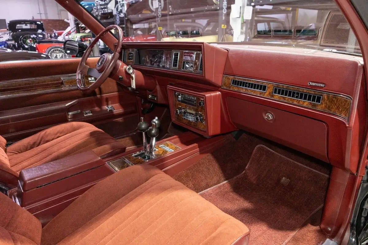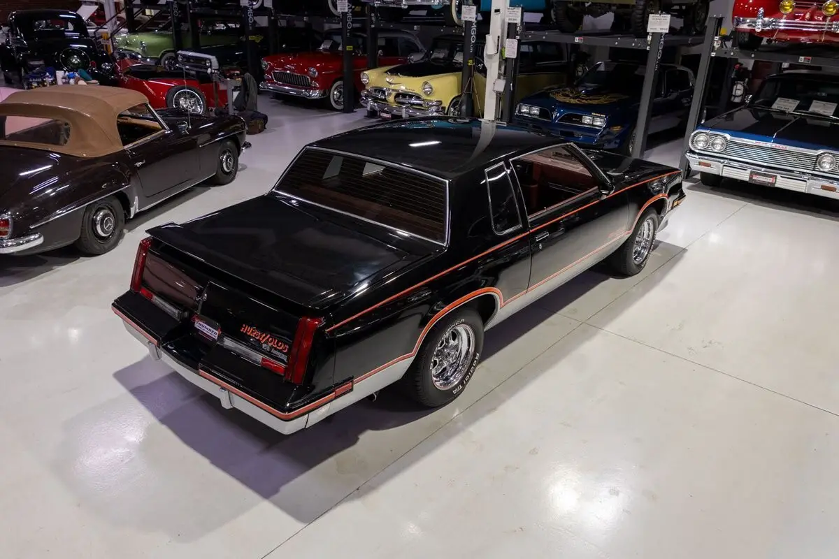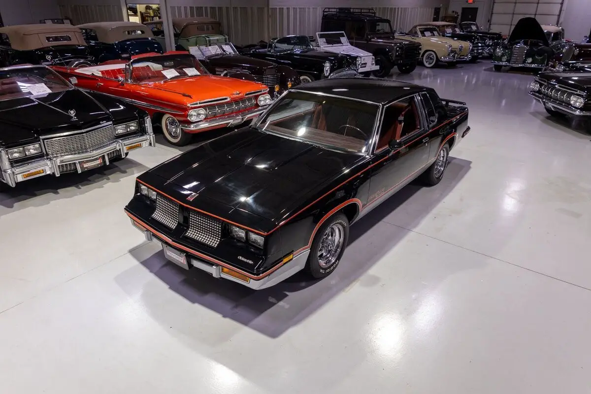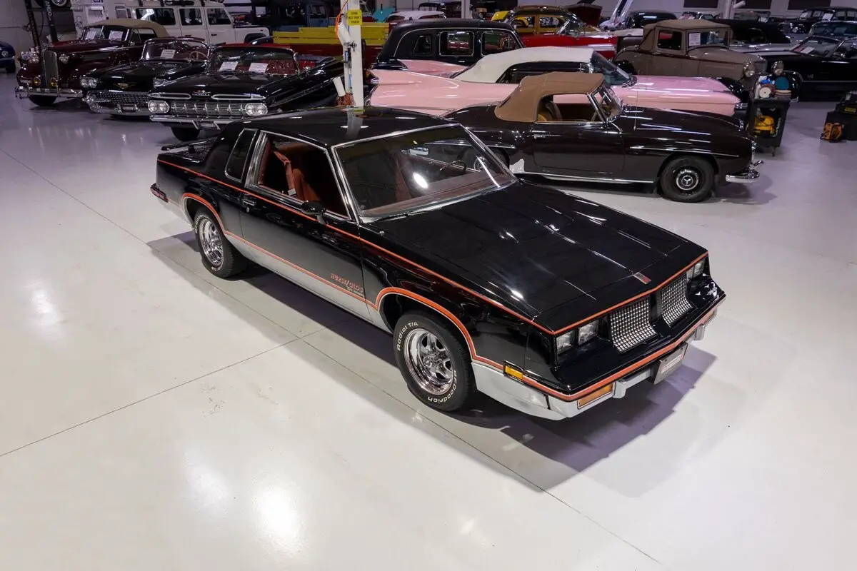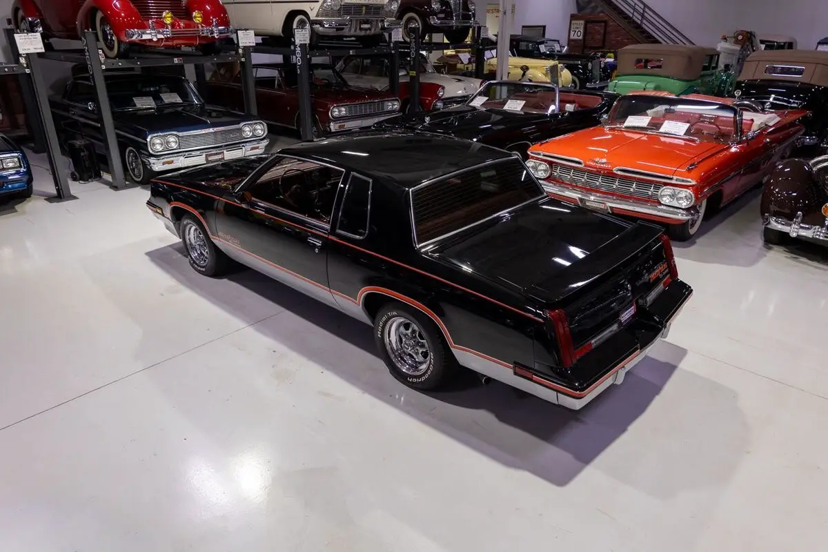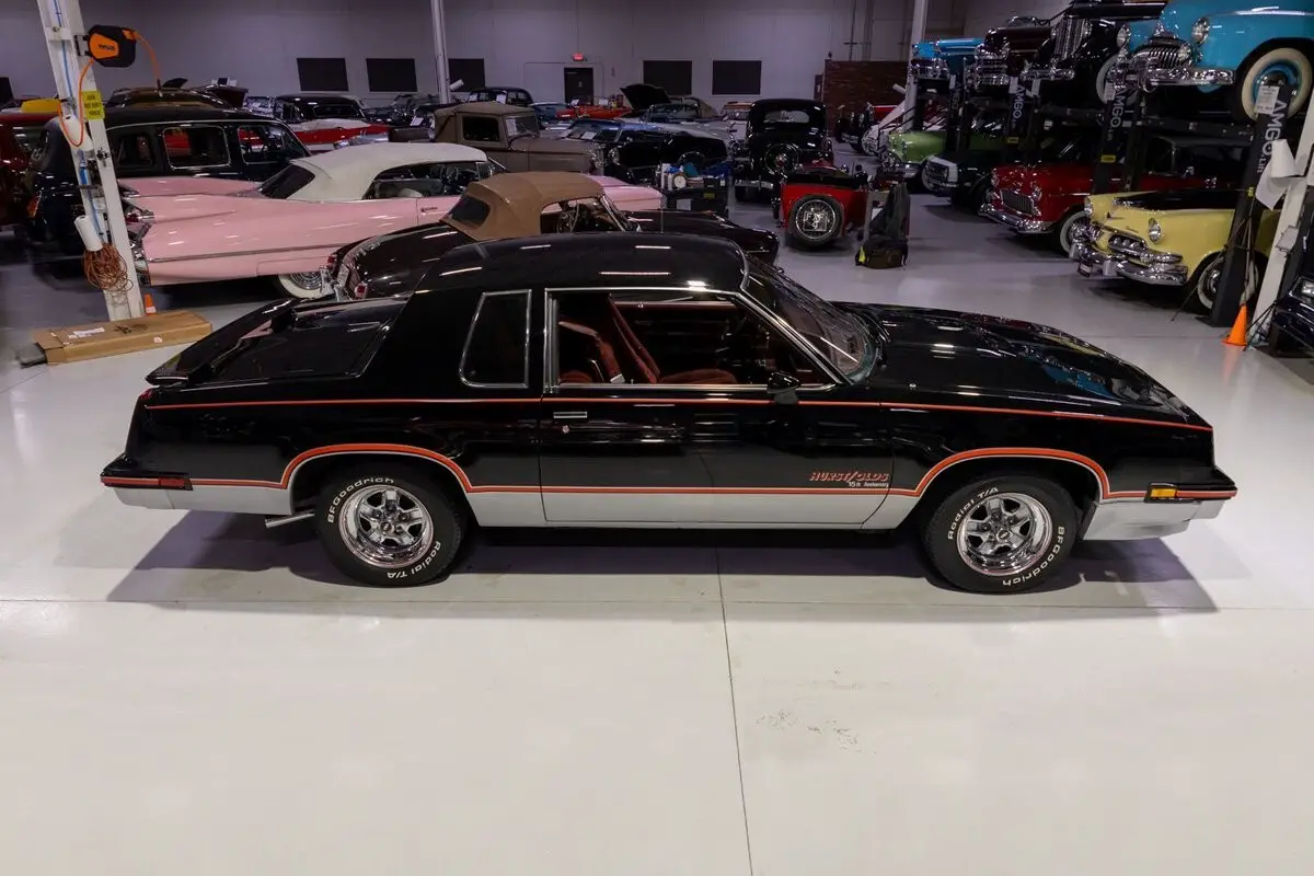 This 1983 Oldsmobile Cutlass Calais Hurst/Olds 15th Anniversary is an absolutely gorgeous, 80s muscle car that is loaded with features and believed to have been less than 900 miles per year by its previous owners. Initially introduced for Oldsmobile's 1961 product lineup, the Cutlass was essentially the top trim level for Olds' entry-level F-85 model. Interestingly, the Cutlass was named after the U.S. Navy's "F7U Cutlass" fighter jet that was known for its tailless design which gave it its ability to be used on the Navy's growing fleet of aircraft carriers. As the 60s progressed, so did the Cutlass with the introduction of the 4-4-2 performance package in 1964 and with the Cutlass becoming its own distinct model in 1967, known for its more deluxe features and trim while retaining a its performance-oriented inclination above the F-85 but below the 442 models. The following year, in 1968, Oldsmobile debuted its "Hurst/Olds" option for the 442, consisting of a special Black and Peruvian Silver paint scheme, an upgraded handling package, various luxurious trim options, and, most notably, a big block 455 V8 that offered massive performance. The sequel '69 Hurst/Olds sported a slightly different look, this time consisting of Firefrost Gold stripes over White paint, a pair of Ram Air hood scoops, and rear spoiler among other items. The Hurst/Olds then took a short hiatus for a few years, due in part to a change in General Motors' displacement rules. When the Hurst/Olds returned to Oldsmobile's lineup in 1972, the muscle car era had tapered off and while the Hurst/Olds was still offered intermittently throughout the 70s, its performance dropped considerably due to new government regulations that effectively ended the Golden Muscle Car era of the late 60s and early 70s. Then in 1983, Oldsmobile reintroduced the Hurst/Olds package back into its lineup as a limited edition to celebrate the Hurst/Olds 15th Anniversary. The new '83 Hurst/Olds sported an iconic tri-color paint scheme consisting of Black over Silver with Red accents along with a new Hurst/Olds 15th Anniversary emblem. Exterior styling highlights also included a "Power Bulge" Hood, front air dam, and a rear deck spoiler that harkened back to Hurst/Olds cars in the late 60s. In addition to the unique paint job, the '83 Hurst/Olds came equipped with perhaps most famous for its Hurst "Lightning Rod" Automatic Shifters that offered "a revolutionary approach to transmission controls," allowing the driver to manually shift in and out of 1st and 2nd gear should they wish. Interiors also were trimmed luxuriously with reclining bucket seats, a sport steering wheel, quartz clock, and special gauge package which included a tachometer. While Oldsmobile originally pegged production to 2,500 cars, the H/O was so popular they added another 500 cars bringing total production to 3,000, which makes finding one like this particular car, with its low mileage and collector-grade condition, a difficult proposition. This particular 1983 Cutlass Calais Hurst comes to us from a southern collector who stewarded this car for nearly 20 years. Under the hood on this '83 Hurst/Olds is a 5.0 Liter (307 cubic inch) V8 topped with a single 4 barrel carburetor that together were said to have produced 180 horsepower when new. The 5.0L V8 is backed by a TH200-4R Automatic Transmission, shifted with the iconic "Lightning Rod" shifter setup, making this classic Oldsmobile muscle car a fun and easy car for anybody to drive. Exhaust exits this Olds' power plant via a pair of FlowMaster mufflers that generate a terrific throaty sound out of the twin tailpipes. This 1983 15th Anniversary Hurst/Olds comes absolutely loaded with creature comforts! With power front disc brakes, you'll be able to bring this 180hp beast to a complete stop much easier and more reliably. This '83 Oldsmobile also comes outfitted with factory power steering, making maneuvering in and out of a tight parking space incredibly simple. Riding on a set of BFGoodrich Radial T/A tires mounted on Super Stock Wheels, this Hurst/Olds has a fantastic look and even better ride. The body is finished in correct Black paint that is accented with red and silver Hurst/Olds 15th Anniversary decals, completing the exterior look of this classic 80s muscle car. The interior of this 15th Anniversary 1983 Oldsmobile Hurst/Olds Cutlass Calais is an absolute time capsule! The front reclining power-adjustable bucket seats and rear bench seat are incredibly comfortable and they are correctly upholstered in Dark Maple cloth. The matching dark maple door panels and dash all look great, sporting classy woodgrain trim. The interior is also absolutely loaded with options! Getting in and out of this Hurst Olds is easy thanks to the tilt sport steering wheel. While the Lightning Rod shifters are a hoot to use, longer cruising is made more comfortable by the inclusion of cruise control. You'll be able to stay cool even on the hottest summer days because this '83 Hurst/Olds comes equipped with factory air conditioning as well. All four power windows are easily raised and lowered with the flick of a switch, and you can even unlock the power door locks with a switch. The instrument cluster is fully featured, outfitted with an 85 MPH speedometer, 6,000 RPM tachometer, temperature gauge, oil pressure gauge, volt gauge, and fuel gauge. You'll also be able to listed to all your classic 80s tunes while cruising on the AM/FM/Cassette entertainment system. Whether you're buying your very first classic car or you're adding to your existing collection of classics, this 1983 Oldsmobile Cutlass Calais Hurst/Olds 15th Anniversary would make an excellent choice. Give Ellingson's a call today at 763-428-7337!