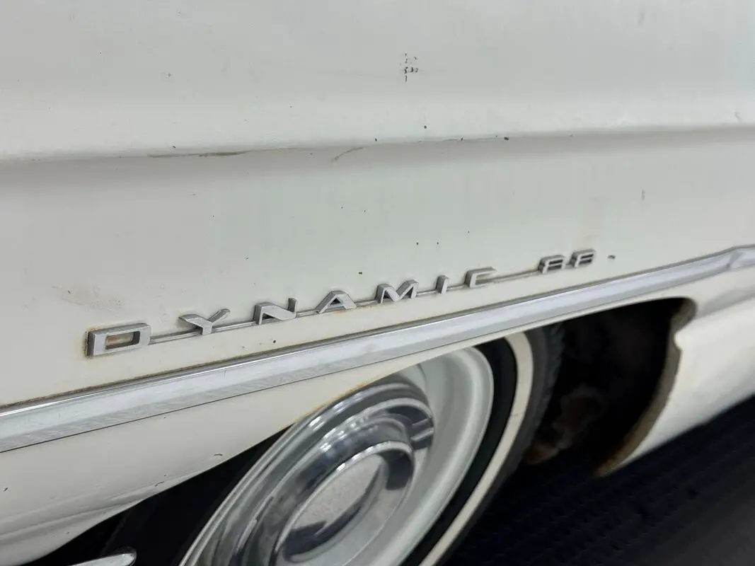 When we lift the hood, we note the insulation is in pieces, broken down after many years exposed to engine heat. The bay itself is driver quality and houses a 394ci V8 rated at 250 horsepower and fueled by a 2-barrel carburetor, mated to a Hydramatic 3-speed automatic that sends power to the rear axle with 2.87 gears. Power brakes are employed as drums on all four wheels.
