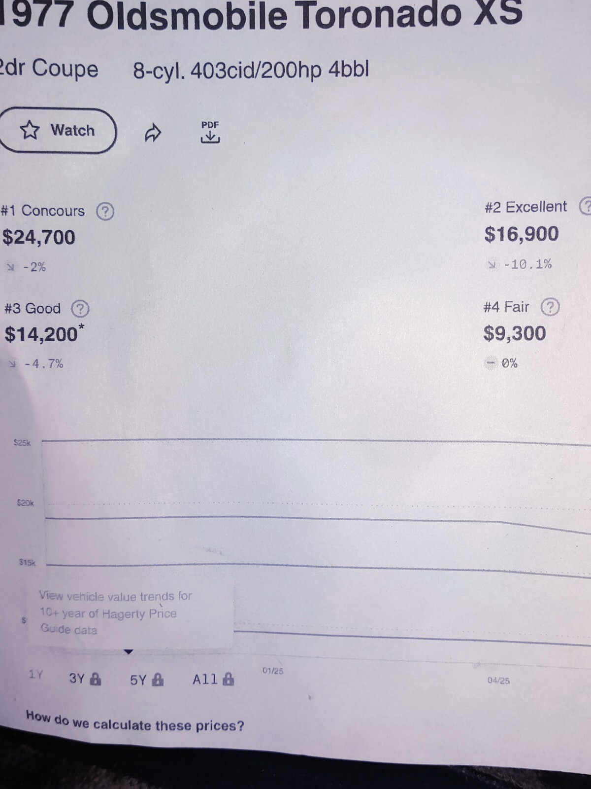 The 1977 Oldsmobile Toronado XS is a classic sedan with a black interior and gray exterior, featuring a sleek design with a FWD drive type. This automatic transmission vehicle has 8 cylinders and can seat 4 people comfortably. With only 1 previous owner, this gas-fueled car is a unique find for collectors and enthusiasts of American-made vehicles. Its clean title and left-hand drive make it a desirable option for anyone looking to add a piece of automotive history to their collection. Rare XS edition just a little over 2500 produced . Definitely no blind spots with that back window. clean Idaho title . Drives great doesn't leak or use oil . if you want more photos just message what photos you want to see .as far as what odometer says it may be correct the original owner very seldom drove and pedals don't show wear like it has 124391. It might be actual mileage but I'm not guarantee it does have only 24391 . I have talked with him about it but he has dementia pretty bad and hard toget the answer. Just glad he knows who I am and does ask me about the car . Added pictures of brake and gas pedal so you can see there isn't much wear as most vehicles would have with over 100k don't see any reason you couldn't fly in and drive it home .
