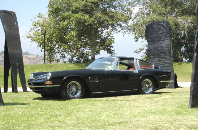 Ford Motor Companies 428 cubic inch V8 coupled to an automatic transmission with a Salisbury limited slip diff, coil over shocks and independent suspension. . Although the 428cu in (7-litre) Ford Galaxie engine that gave the model its name produced less power than the Cobra 427’s, the 345bhp on tap was capable of delivering all the performance that customers desired. Shrugging off the car’s 1,416kgs weight and seemingly unhampered by the automatic transmission, as fitted to the majority of cars, this stupendous engine enabled road testers to record sub-six-second 0-60mph times and 0-100mph times of around 14.5 seconds, with a maximum speed in excess of 140mph. Brakes are 4 wheel discs with double master cylinder and twin servos. Door windows are frameless and power operated with opening rear quarter windows and in between both are opening glass extractor vents. It has a large boot with additional storage for luggage on a padded platform behind the seats. Under the boot floor is the battery and spare tyre. It has bucket seats and a center console where the shifter is located. Maximum speed was around 150mph. The dimensions are a 96-inch wheelbase; 55-inch front track; 56-inch rear track; 67 inches wide; 51 inches tall; an overall length of 174 inches and a weight of 3143 pounds. They have some of the lineage and parts to the Maserati Mistral--