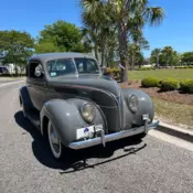 Inside, the black bench seat is in near-excellent condition. The car’s wood floor is in very good order, as is the black headliner. The wooden instrument panel lends an air of warmth. The dash and the four-spoke steering wheel with a wooden rim and black inner door panels are all in great condition. The mirror glass and shift are both in good condition. There is no radio in this car.
