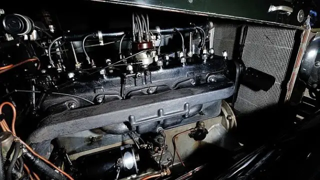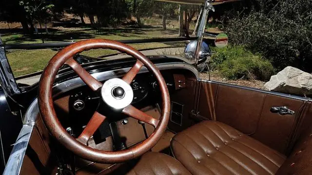 Clearly benefiting from climate-controlled garage storage for so many years and recent professional detail work, this Locomobile remains wonderfully un-restored. It retains its original and nicely patinated Forest Green paint finish accented by black fenders, 21-inch wood-spoke wheels, six-ply Gehrig tires, a flying Eagle radiator mascot, a rare special-order stanchion-mounted spotlight, rear luggage trunk, and twin mounted spare tires. The interior compartment is similarly original and excellent, including as are the wooden items. All gauges are factory-original, including the clock. A fuel-pressure gauge is also present; the analog fuel-level gauge is mounted on the tank. A cut glass light provides ease of entry and exit on the passenger side of the vehicle, and the rear-passenger compartment is equipped with foot bars, reading lights, and an ashtray. The wooden convertible top bows remain in wonderful condition and the (possibly also factory original) top is held down by the factory original leather straps. While equipped with electric starting, this Model 6-90 can be hand-cranked as necessary once the optional screw-on crank hole cover is removed; the starter crank, jack, and tools that come with the car. Simply striking and incredibly original in presentation and quick starting, this extremely rare three-owner 1927 Locomobile is a highly sporting CCCA Full Classic automobile that will provide a welcome entry into a multitude of highly enjoyable events and a sophisticated and capable experience belying its age. Given its early ownership by former Locomobile president Cliff Durant, it also provides a wonderful link to America’s early automotive heritage. An overview of the car’s 1928 specifications: