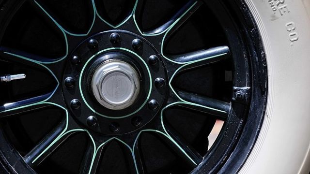 21" wooden spoke wheels with six-ply Gehrig tires in fantastic shape.