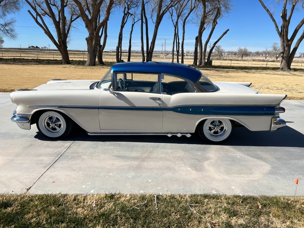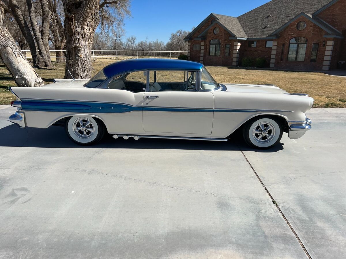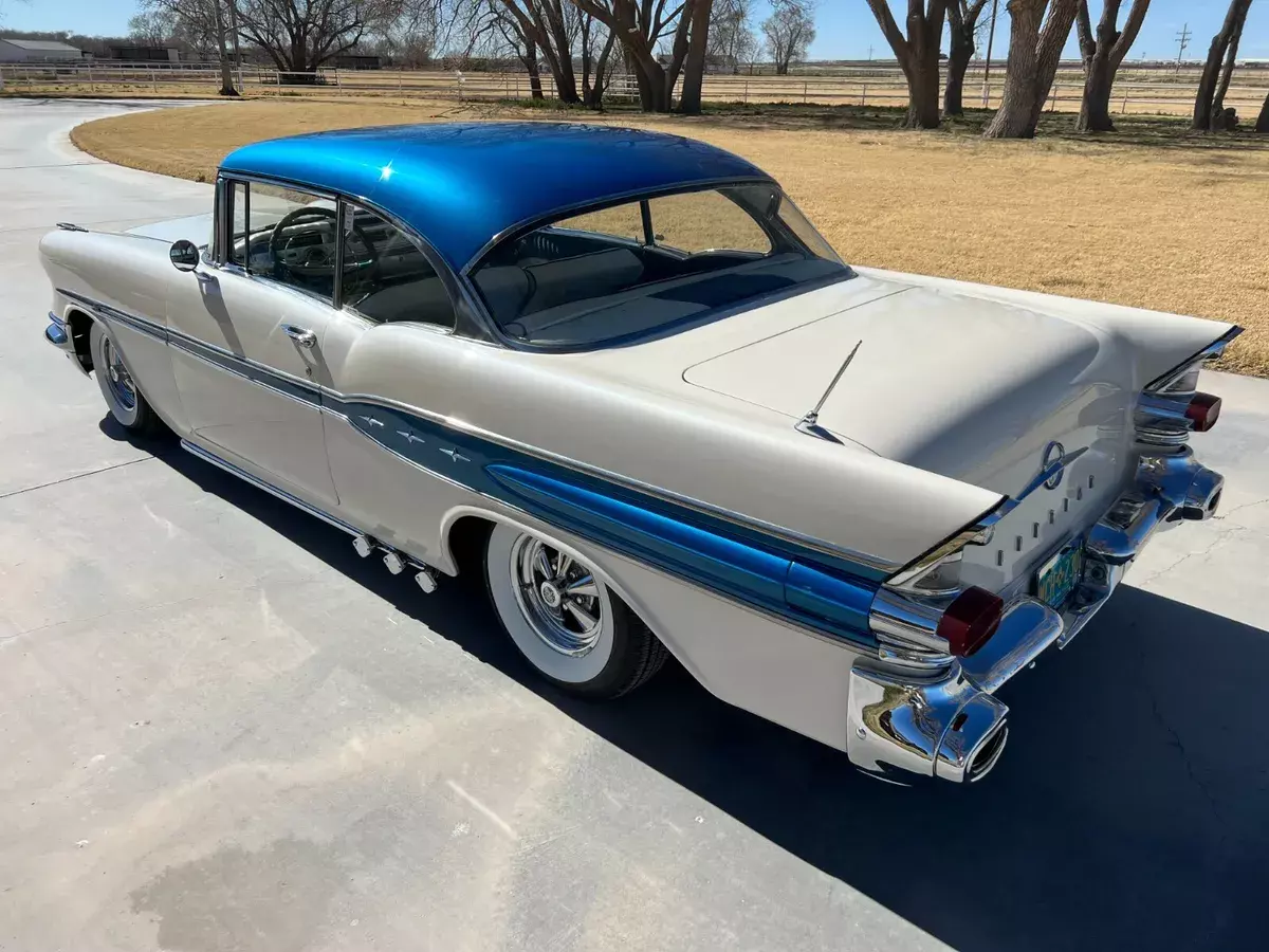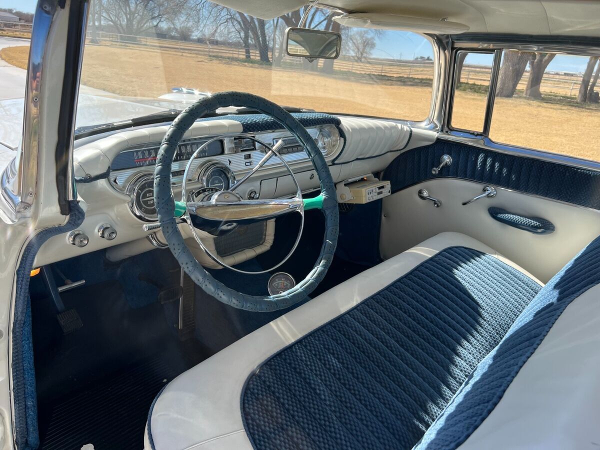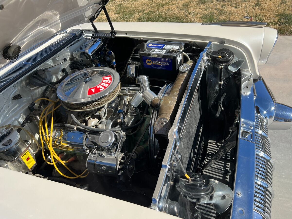 57 Pontiac Super Chief, 389, Hydro trans, Very Clean cruiser. New tires, recent paint in pearl white and metalic blue. New fuel tank. Still has drum brakes and arm strong steering, But a fun cruiser! Chome everywhere on this car and all in Great shape. There is an old school style tonneau cover for the back seat, and a fitted car cover that come with it. Come drive it home or I can work with you or your shipper to pick it up. Feel free to ask any questions, I'll reply as soon as possible.