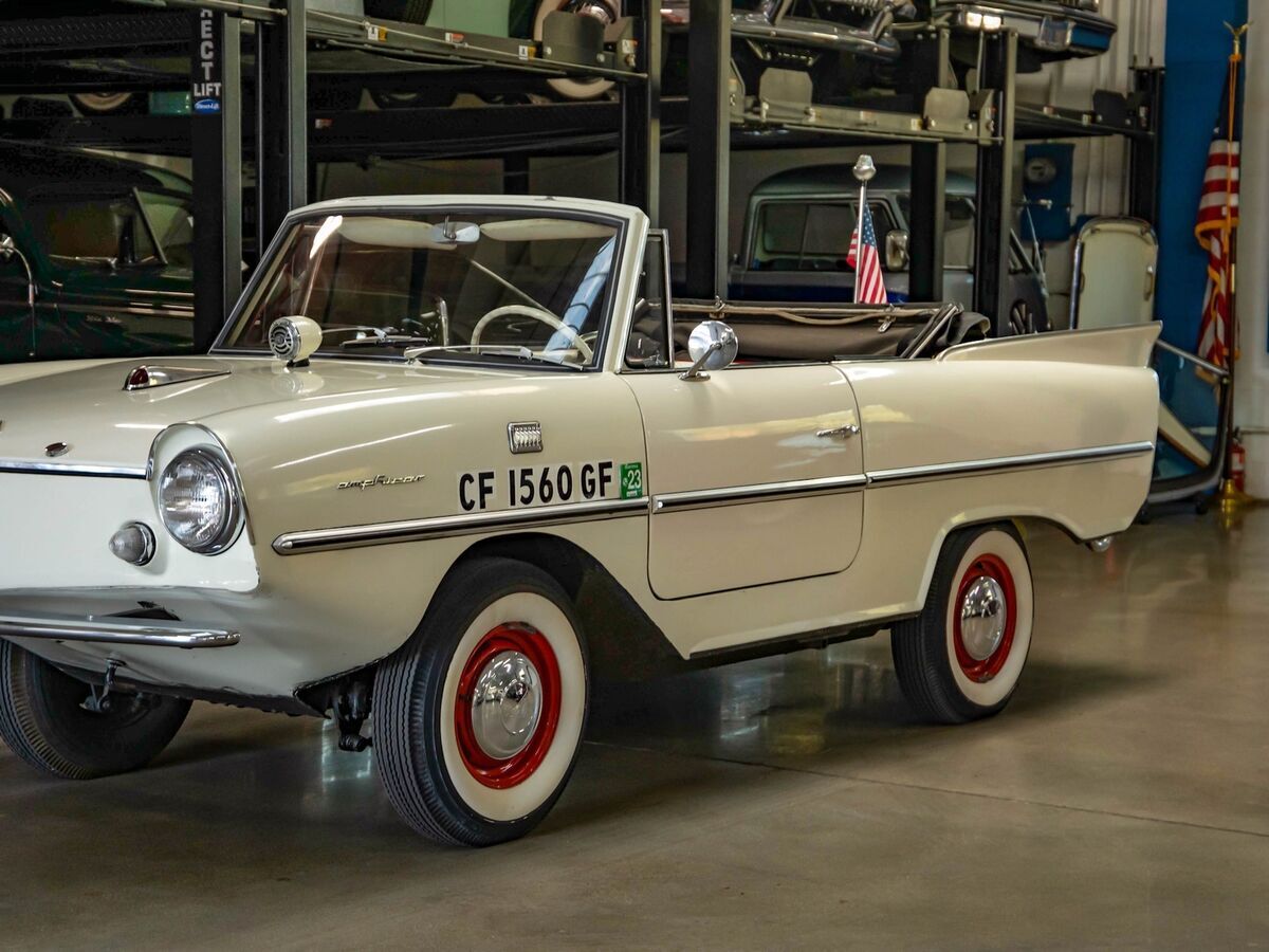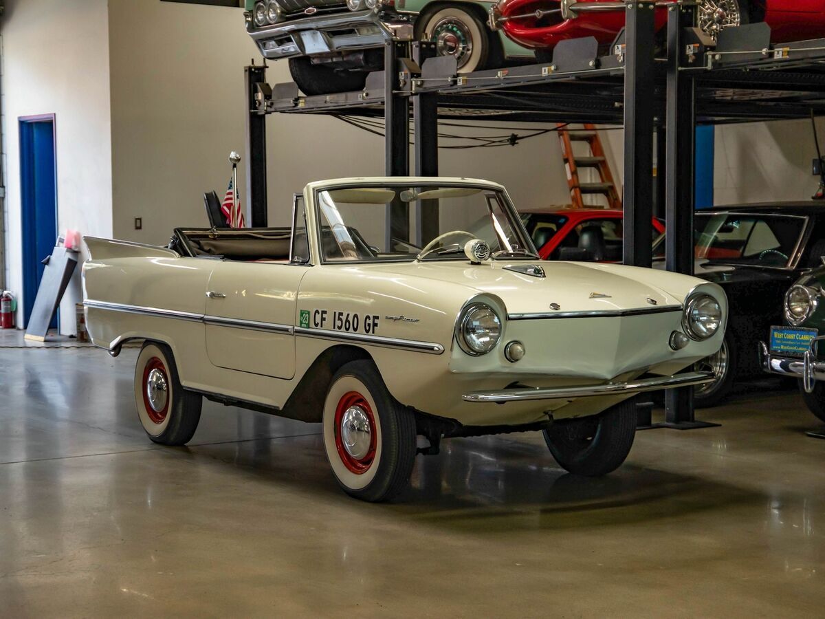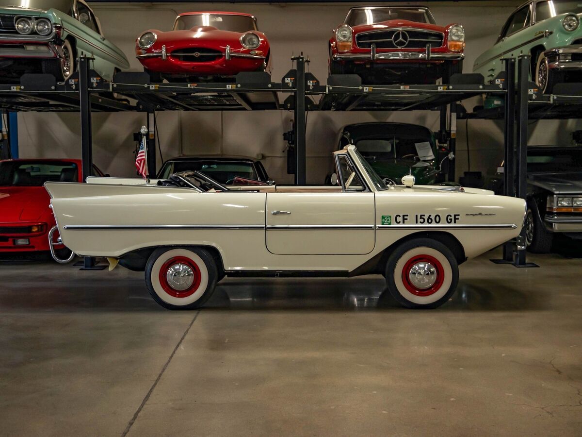 West Coast Classics are proud to present a beautiful example of this rare all original survivor example of a California owned since new 1967 Amphicar 770 amphibious automobile recently acquired from the long time, over 56 years in fact, and only second ever owner with 5,210 original miles!The Amphicar was launched at the 1961 New York Auto Show and was marketed in Germany from 1961-1965 with production of only some 3,878 units ending in 1965. As later mandated for the U.S. Coast Guard it featured navigation lights and a flag. The car features a foldable top which classifies the car as a cabriolet. Its propelled on water by twin propellers mounted under the rear bumper and is built from mild steel with rubber gaskets sealing the doors and with a bilge pump that could be actuated if the scupper level rises!The rear mounted engine is matched to a 4 speed manual transmission and once in the water the pair of reversible propellers at the rear, with a transfer case with a second gear lever engaging forward or reverse, the main gear would then remain in neutral until having to help maneuver the Amphicar out of the water when the main gear would then engage along with the second gear driving the propellers in order to help assist drive itself out of the water. a 1147cc Triumph Herald 1200 engine which provided the necessary combination of performance with a power output of 43HP, weight, cool running and reliability. The Amphicar was designated the 'Model 770' because the Amphicar could achieve speeds of 7 knots in the water and 70mph on land! Later versions of the engine displaced 1296cc and 1493cc producing 75HP. In water, as well as on land, the Amphicar was steered by the front wheels acting as rudders.Production started in late 1960 and by the end of 1963 production had stopped with the last actual build being assembled in 1965. The cars were to be titled in the year that they were sold rather then when they were produced, therefore an unsold Amphicar assembled in 1963 or 1965 could eventually be titled as a 1967 or 1968 if that was when it was first sold but by 1968 the cars could no longer be sold in the U.S due to new environmental and emissions and safety equipment standards. Most Amphicars were indeed only sold in the U.S. anyways, with a few cars sold in the U.K and Germany. Total production was only 3,878 vehicles of which only 97 were right hand drive. This is a late model 1967 Amphicar owned by the same southern California owner since 1977 when he had purchased the vehicle from its original owner. It is a true time capsule survivor and an extremely rare example of a completely rust free and very fine surviving example of a 1967 Amphicar 770 which is mostly all original with only very minor imperfections or flaws in the paintwork and it's all stock and unrestored 'Red & White' color seats interior.With most examples on the market today having been either at least somewhat, or mostly completely restored, to find an all original example as built in 1967 with original factory specifications is a very rare find indeed! The 4 cylinder engine is extremely strong and responsive and the 4 speed manual transmission shifts smoothly through the gears and the engine temperature always remains cool.This is a rare opportunity to own a very rare all original rust and accident free and internationally desirable unrestored yet still in fabulous condition throughout 1967 Amphicar 770!