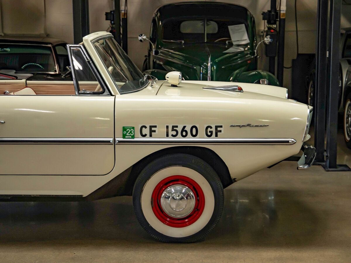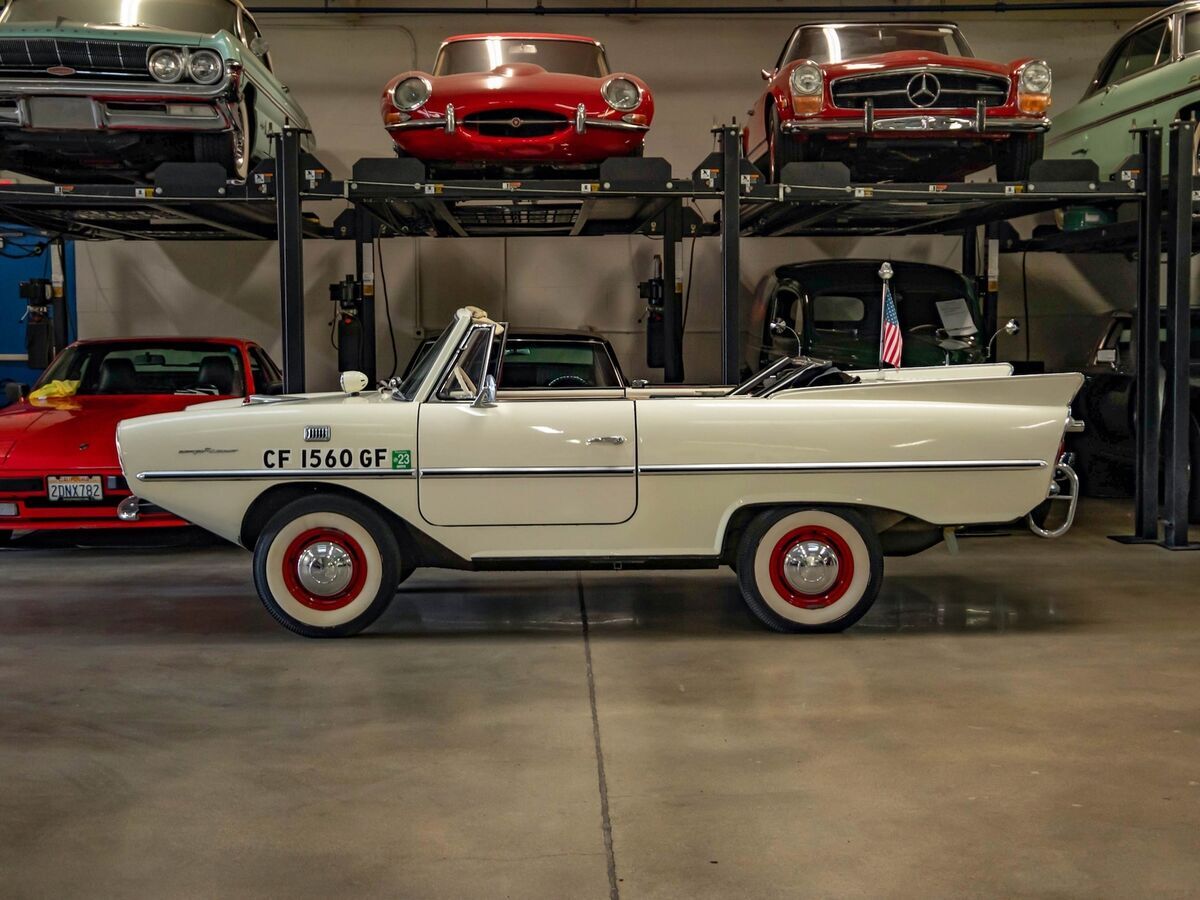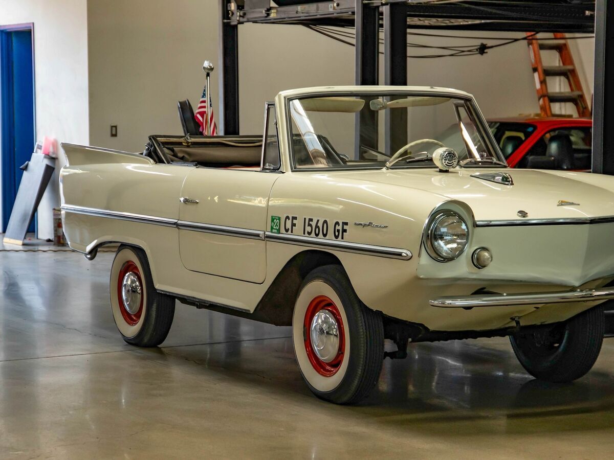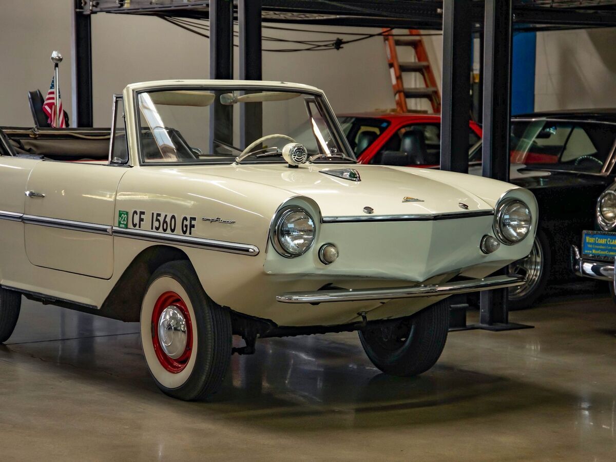 West Coast Classics are proud to present a beautiful example of this rare all original survivor example of a California owned since new 1967 Amphicar 770 amphibious automobile recently acquired from the long time, over 56 years in fact, and only second ever owner with 5,210 original miles!The Amphicar was launched at the 1961 New York Auto Show and was marketed in Germany from 1961-1965 with production of only some 3,878 units ending in 1965. As later mandated for the U.S. Coast Guard it featured navigation lights and a flag. The car features a foldable top which classifies the car as a cabriolet. Its propelled on water by twin propellers mounted under the rear bumper and is built from mild steel with rubber gaskets sealing the doors and with a bilge pump that could be actuated if the scupper level rises!The rear mounted engine is matched to a 4 speed manual transmission and once in the water the pair of reversible propellers at the rear, with a transfer case with a second gear lever engaging forward or reverse, the main gear would then remain in neutral until having to help maneuver the Amphicar out of the water when the main gear would then engage along with the second gear driving the propellers in order to help assist drive itself out of the water. a 1147cc Triumph Herald 1200 engine which provided the necessary combination of performance with a power output of 43HP, weight, cool running and reliability. The Amphicar was designated the 'Model 770' because the Amphicar could achieve speeds of 7 knots in the water and 70mph on land! Later versions of the engine displaced 1296cc and 1493cc producing 75HP. In water, as well as on land, the Amphicar was steered by the front wheels acting as rudders.Production started in late 1960 and by the end of 1963 production had stopped with the last actual build being assembled in 1965. The cars were to be titled in the year that they were sold rather then when they were produced, therefore an unsold Amphicar assembled in 1963 or 1965 could eventually be titled as a 1967 or 1968 if that was when it was first sold but by 1968 the cars could no longer be sold in the U.S due to new environmental and emissions and safety equipment standards. Most Amphicars were indeed only sold in the U.S. anyways, with a few cars sold in the U.K and Germany. Total production was only 3,878 vehicles of which only 97 were right hand drive. This is a late model 1967 Amphicar owned by the same southern California owner since 1977 when he had purchased the vehicle from its original owner. It is a true time capsule survivor and an extremely rare example of a completely rust free and very fine surviving example of a 1967 Amphicar 770 which is mostly all original with only very minor imperfections or flaws in the paintwork and it's all stock and unrestored 'Red & White' color seats interior.With most examples on the market today having been either at least somewhat, or mostly completely restored, to find an all original example as built in 1967 with original factory specifications is a very rare find indeed! The 4 cylinder engine is extremely strong and responsive and the 4 speed manual transmission shifts smoothly through the gears and the engine temperature always remains cool.This is a rare opportunity to own a very rare all original rust and accident free and internationally desirable unrestored yet still in fabulous condition throughout 1967 Amphicar 770!