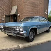 The impala is one beautiful, solid, and clean automobile . This car is, a very nice original driver with one prior repaint. The chrome glass and paint are in very good condition. No rust. Solid top to bottom. The original 283 V8 automatic transmission runs and drives very well. Car looks very straight. Few dings in some of the side stainless trim. Paint code is 912 (Silver Blue) Trim code is 842 (Blue) The interior is original. Only the carpet was replaced. I had this car, professionally cleaned and detailed. Under the hood is exceptionally clean. I replaced the radiator and heater core. The trunk is very clean as well. I replaced was the antenna and the radio works great As do all the other gauges. The gas gauge is a little off. All lights blinkers work. Wipers work. The brakes and tires are good. So she’s ready to roll. This is one pretty original vehicle. The car shows 42,087 miles which I believe are original. I have a Walk around video of the car for anyone interested. Inspections are welcome prior to the end of the auction. This beautiful Impala is being sold as is.