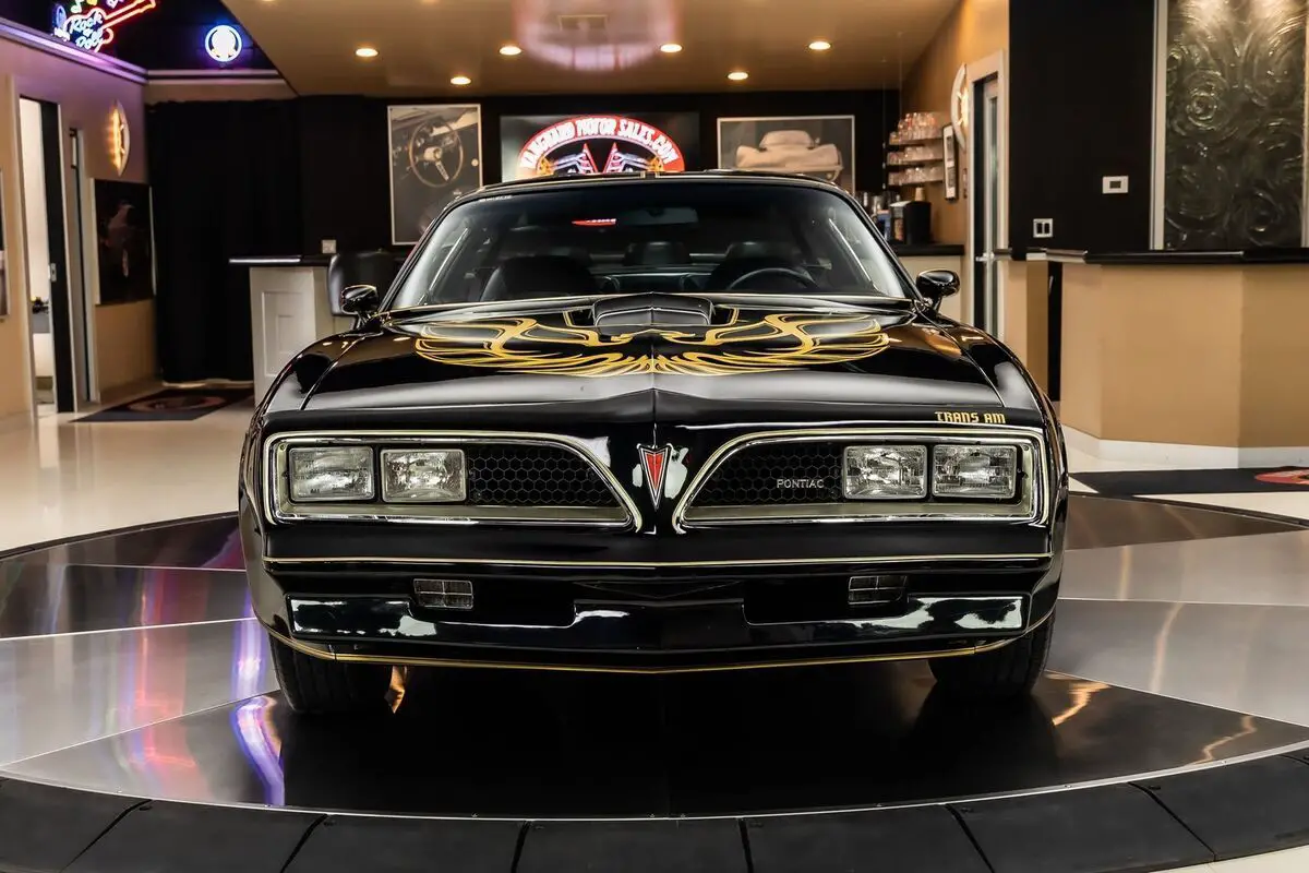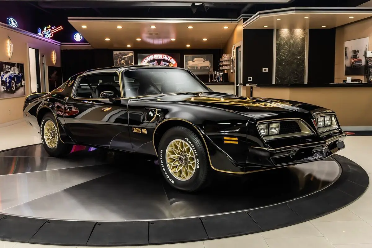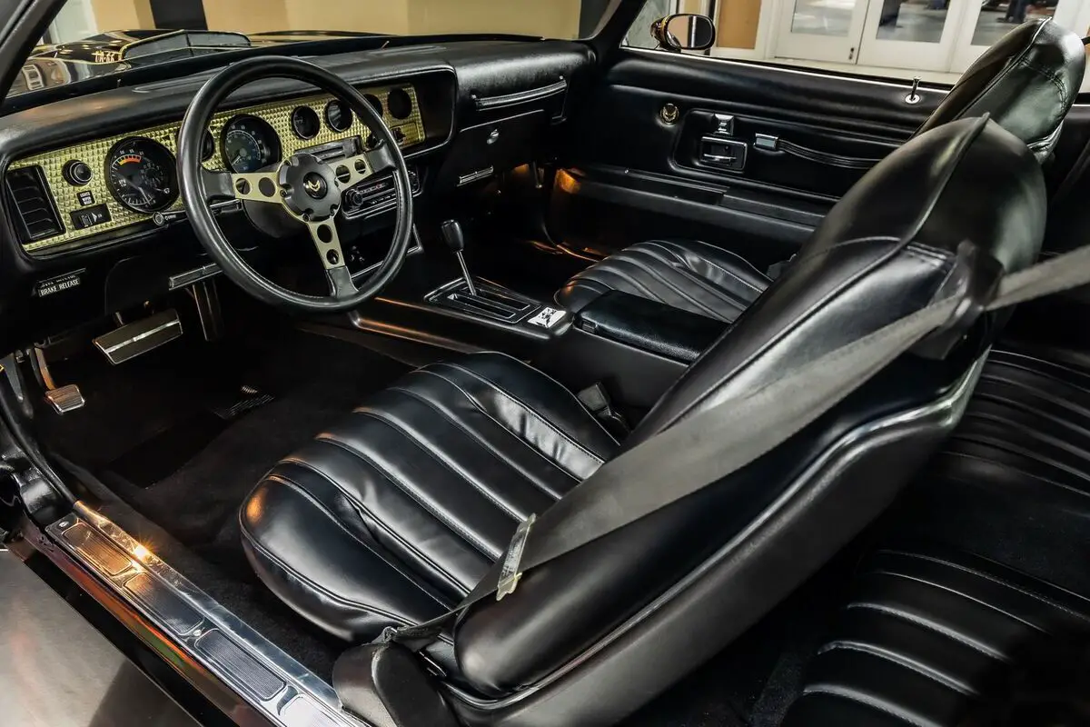 Check out this gorgeous 1977 Pontiac Firebird Trans Am Y82 Special Edition! This Trans Am has undergone a meticulous Rotisserie Restoration with no expense spared! With only 300 Miles on the new rebuild, this Trans Am is finished in the Glossy Black Original Paint Color, Original Black Interior, Factory Gold Western Wheels, T/A Hood, along with Gold Trans Am Decals! Under the hood sits a Numbers Matching Pontiac 6.6L 400ci V8 Engine with Period Correct Features. Power Is sent to the road through a Numbers Matching TH350 3-Speed Automatic Transmission and Factory Style Rear End with 3.08:1 Gear Ratio! Additionally, This '77 Pontiac also features Power Brakes (front disc), Power Steering, New X-Pipe Exhaust and The Iconic Hurst Hatch Roof!