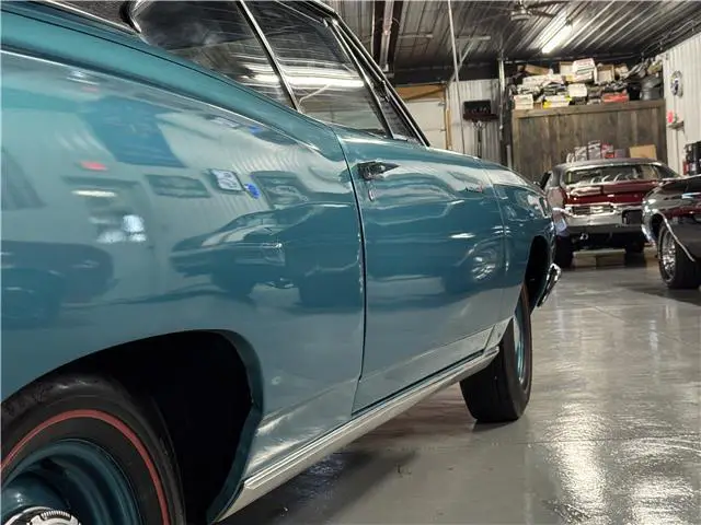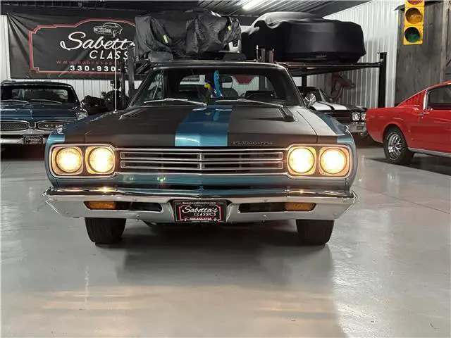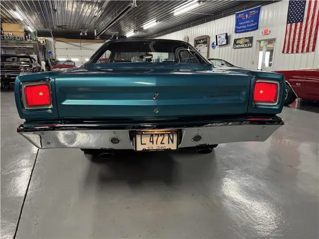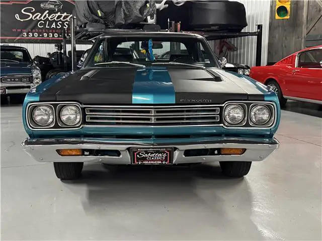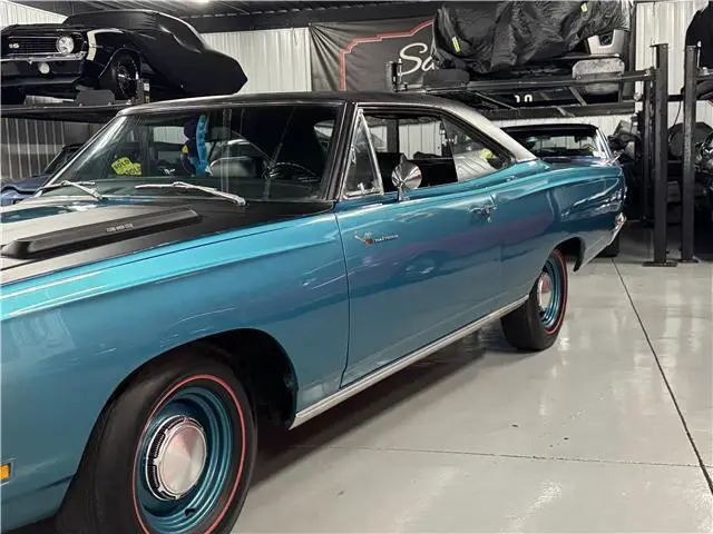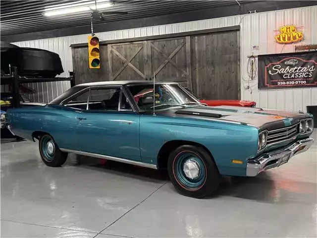 Vehicle Original VIN : RM23H9G2485131969 PLYMOUTH ROAD RUNNER#’S MATCHING DRIVETRAIN, WINDOW STICKER!!! This is one neat Road Runner! It looks amazing with its original color Q5 Seafoam Turquoise, on a clean and rust free body. It is a very straight car from every angle. All body panels are aligned very well and the door jambs are really nice. The finish on this car is smooth and glossy. All the chrome and brightwork are in good shape. The taillights look good (no cracks), the rear bumper has been rechromed and it is very shiny. The door handles are nice, the front grill is original and in nice shape, the front bumper was rechromed and is like new, the turn signal lenses are nice. It has the correct style antenna. The factory glass is in good shape. It rides on a set of original steel wheels painted in the exterior color with nice original hubcaps, wrapped with a set of bias ply red line tires, for that is what it had on it when new.The interior is all original. The carpet, door panels, armrest bases and window cranks are in great shape. The headliner is as tight as a drum. It has the factory steering wheel, factory gauges that all work, factory AM radio, dash pad has no cracks, the dash lenses are clear, nice rear package tray, front and rear seat belts. The windows roll up and down with ease. The 383 cubic inch engine has the vin stamped on it. The engine bay is nicely detailed and painted in Seafoam Turquoise, factory Road Runner MEEP MEEP horn, original radiator, factory manifolds, factory intake manifold with an Edelbrock 4 barrel carb (we do have the original ABF carburetor that will go with the car), factory valve covers and original air cleaner with 383 call outs on it. The VIN number is stamped on the core support This engine runs flawlessly and is strong!! The undercarriage is solid and appears to be original metal. All of the factory seams are clean. It still retains its factory undercoating!! Looking up at the engine it is clean as well as the 727 Torque Flite 3 speed automatic transmission which also has the vin stamped in it. The front suspension looks good, 8 ¾” sure grip rear end with 3:23 gears, dual exhaust that runs all the way out the back with correct exhaust tips, new fuel tank, straps and sending unit. The E-brake is hooked up and in working condition. The trunk is very impressive with all clean metal. It is painted the same as the body color and detailed with a trunk mat, spare tire, original jack assembly and new weather stripping. This beautiful ORIGINAL Plymouth Road Runner looks great and runs strong! It is turn-key ready for cruisn’ and car shows! Don’t let it get away!