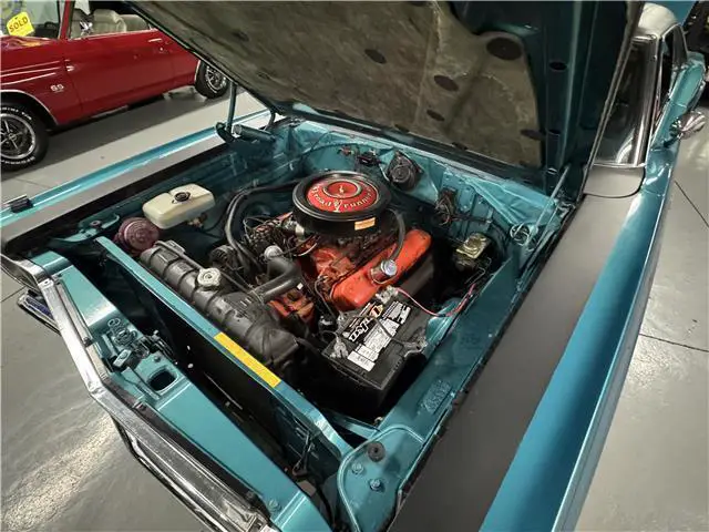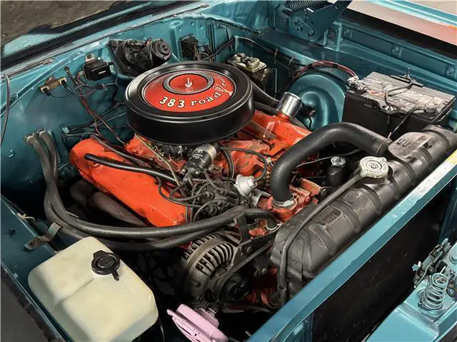 The 383 cubic inch engine has the vin stamped on it. The engine bay is nicely detailed and painted in Seafoam Turquoise, factory Road Runner MEEP MEEP horn, original radiator, factory manifolds, factory intake manifold with an Edelbrock 4 barrel carb (we do have the original ABF carburetor that will go with the car), factory valve covers and original air cleaner with 383 call outs on it. The VIN number is stamped on the core support This engine runs flawlessly and is strong!!