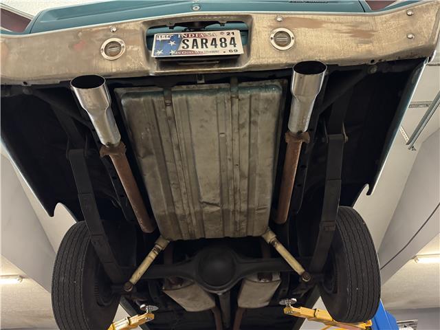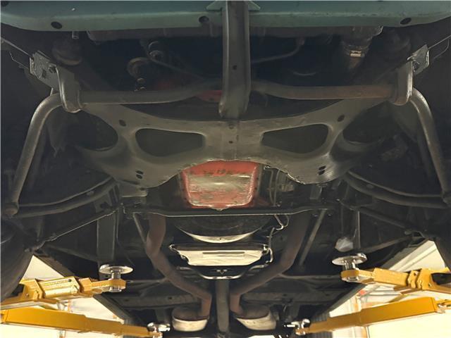 The undercarriage is solid and appears to be original metal. All of the factory seams are clean. It still retains its factory undercoating!! Looking up at the engine it is clean as well as the 727 Torque Flite 3 speed automatic transmission which also has the vin stamped in it. The front suspension looks good, 8 ¾” sure grip rear end with 3:23 gears, dual exhaust that runs all the way out the back with correct exhaust tips, new fuel tank, straps and sending unit. The E-brake is hooked up and in working condition.