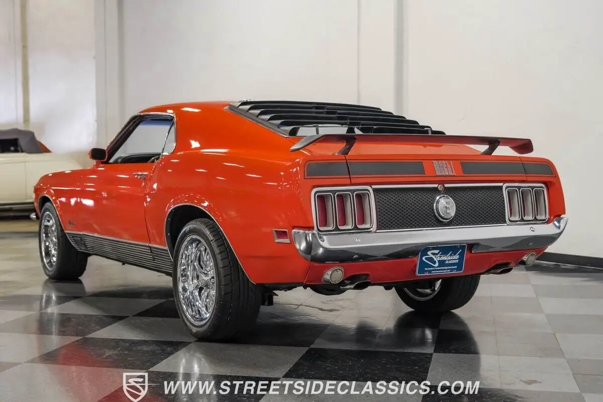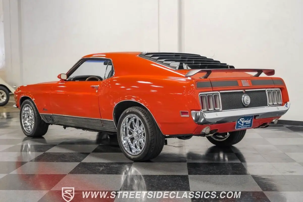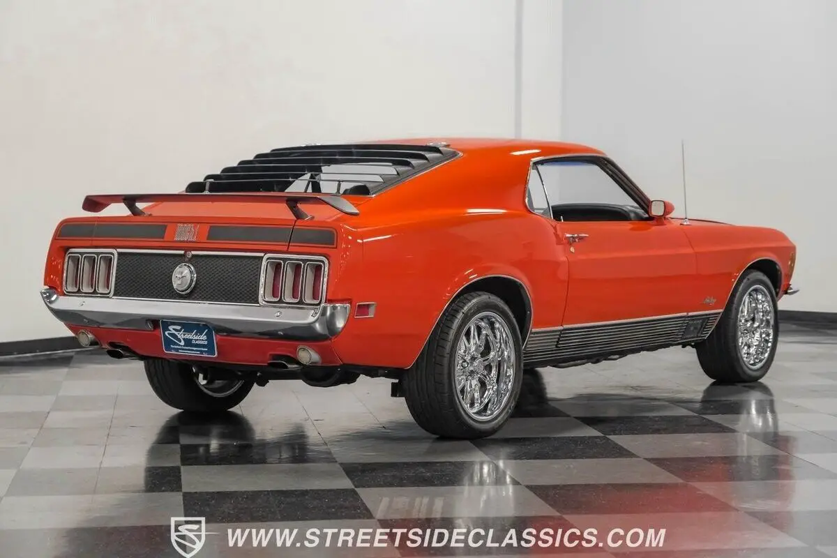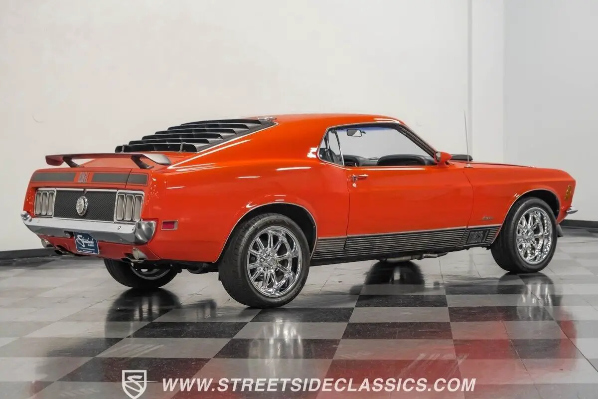 Vehicle Original VIN : 0T05M157308This 1970 Ford Mustang Mach 1 sports a full performance makeover in brilliant Code 1 - Calypso Coral, its factory correct color. Every detail is dialed in, from the race-inspired shaker hood with twin hood pins to the competition-ready black stripes. The menacing stance comes from 17-inch U.S. Mags wrapped in 245/45R17 rubber on all four corners. A curved rear wing and aggressive chin spoiler nail the street-race look, while the rear window louvers add that pure muscle car profile. The black cabin features factory-correct knit vinyl bucket seats anchored by a center console with Hurst shifter. A performance-minded wood steering wheel puts control in your hands, complemented by a modern Holley Sniper EFI display mounted left of the gauges. Vintage Brand air conditioning blasts cold air when you need it, while the AM/FM/AUX stereo brings the tunes. Power steering makes maneuvering this muscle machine a breeze, and new seat belts keep everything secure. The 351 Cleveland V8 was rebuilt just 2,000 miles ago, bored .020 over for extra muscle. A modern Holley Sniper electronic fuel injection system runs the show, while long tube headers feed into a growling FlowMaster dual exhaust. A T5 five-speed manual transmission puts total gear control in your hands. Performance upgrades include front disc brakes, subframe connectors, and street-tough traction bars. An aluminum radiator with both electric and engine-driven fans maintains ideal temps under any condition. HIGHLIGHTS: • 351 Cleveland V8 Engine (2k miles on rebuild) • T5 5-Speed Manual Transmission • Holley Sniper Electronic Fuel Injection • Long Tube Headers • FlowMaster Dual Exhaust • Front Disc Brakes • Subframe Connectors • Traction Bars • Aluminum Radiator with Dual Fans • New Steering Box • Calypso Coral Paint with Black Stripes • Shaker Hood with Hood Pins • Rear Window Louvers • Rear Wing • Chin Spoiler • 17" U.S. Mags with 245/45R17 Tires • Black Interior with Bucket Seats and Console • Power Steering • Vintage Brand Air Conditioning • AM/FM/AUX Stereo • Build Sheet • Marti Report Well documented with the Marti Report, Factory Buildsheet and Dealer Invoice, this 1970 Ford Mustang Mach 1 combines classic muscle with modern performance. The built 351 Cleveland, five-speed manual, and fuel injection deliver pure street performance. Call today!