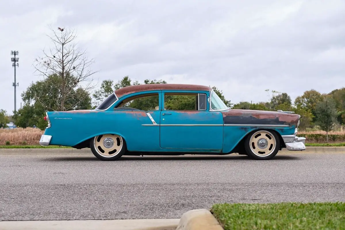 1956 Chevrolet Bel Air / 150 with original Twilight Turquoise paint, Frame-off Restored with an LS1 V8 Engine, 4L60e Automatic Transmission, All new suspension, New Brakes, New Cold A/C, New Interior, Custom Wheels and so much more! This is a very high-end build with the body being left untouched on purpose which gives it the patina look. This Patina has been cleared over to preserve. Get in and drive this car anywhere and be a hit at any car show! While we do our best to provide the highest quality muscle cars with an honest and reliable description and realize the importance of transparency when selling vehicles. That being said, we have not built, modified, changed or personally owned this vehicle. Whether this vehicle is consigned or owned by Past & Present Motor Cars we do not know the vehicles complete history since new. We want to be clear and try to answer any questions our customers might have prior to purchasing. Additionally, we not only welcome but we encourage 3rd party independent inspections. Please inquire prior to purchase to make sure the advertised vehicle has not already been sold. We list our vehicles on multiple websites and a vehicle can sell at any time. If a customer chooses to purchase sight unseen (many of our customers choose this option) the customer accepts the vehicle AS IS and WHERE IS and understands we cannot address concerns after purchase. For this reason, it's important all concerns are addressed prior to purchase. We make every effort to present accurate and reliable information, but use of this information is voluntary, and should only be deemed reliable after an independent review of its accuracy, completeness, and timeliness. It is the sole responsibility of the customer to verify the existence of options, accessories and the vehicle condition before time of sale. Financing is Available with low rates and Vehicle Shipping is available from our Showroom to your Garage. A Classic Car Warranty is Available for Purchase from a 3rd Party. Please speak to our Sales Associate or Company Representative for more information. Our team is working and available anytime by Phone or Text for your convenience at 407-559-7759. Thank you for your interest!