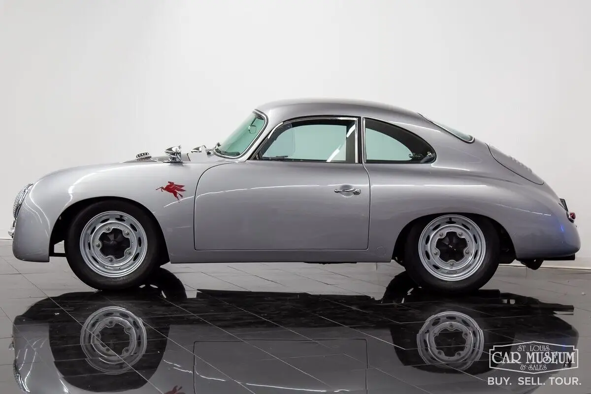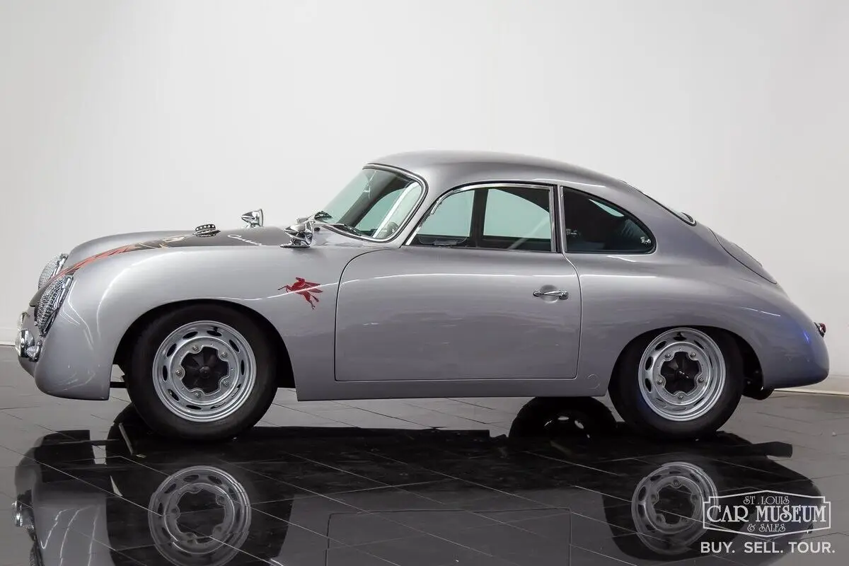 We are very pleased to offer this beautiful constructed 1958 Porsche 356A Carrera GT Outlaw Coupe replica finished in traditional Porsche GT Silver exterior and Dark Navy Blue interior fitted with comfortable Carrera Speedster bucket seats with black/white pepita cloth inserts! At the rear rests a brand new, performance-tuned 2180cc dual port engine, ported & polished EMPI fly-cut heads; fully balanced 90.5 mm Mahle pistons & barrels, 82mm counter-weighted crankshaft, and connecting rods; 110 Engel Scat cam, dual Weber 44IDF carburetors, lightened flywheel, 200mm Sachs clutch & cover, full-flow oil system with remote oil filter, additional external oil cooler, along with a modified single-tuck center-exit exhaust system that now produces an estimated 150+ horsepower! The former owner had this engine built by a retired Porsche mechanic to his specifications, along with a brand new clutch in 2020. The mileage on this engine amounts to only 350 miles.