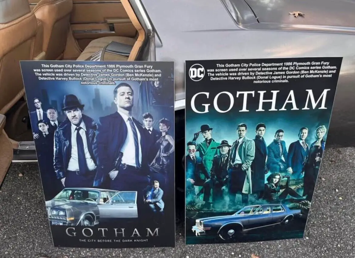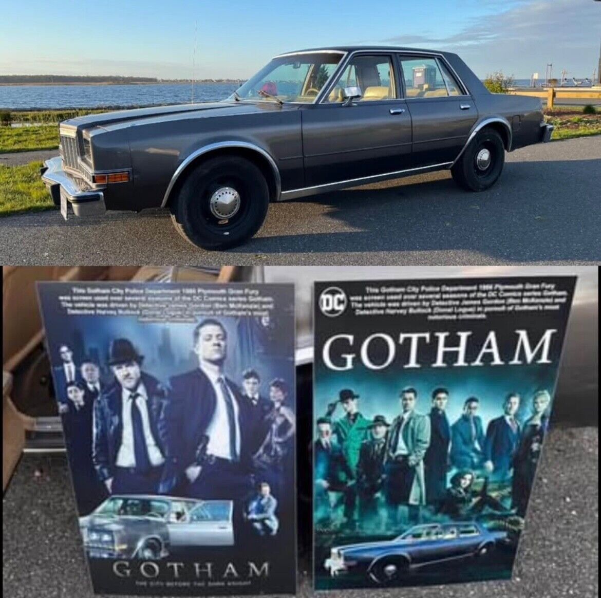 Gotham PD 1986 Plymouth Gran Fury · Sedan · Driven 88,000 miles1986 Plymouth Plymouth Gran Fury · Sedan · Driven 88,000 milesSelling my documented screen used Gotham Series production car. The car was used by Ben McKenzie (James Gordon) and Donal Logue (Harvey Bullock) throughout the five season of production. In addition to the car, the winning bidder will receive numerous Gotham screen used items including a Gotham Police riot shield, Detective James Gordon (Ben McKenzie) suit, Detective Gordon dress shirt and Gotham villain vest. I also will include a Gotham Police hat and Gotham Police Detective badge. Overall nice condition. Great for car shows and/or convention appearances. If anyone is interested please message me.The will eventually need its transmission looked. Sometimes it’s slips into gear rough. Probably needs an adjustment.