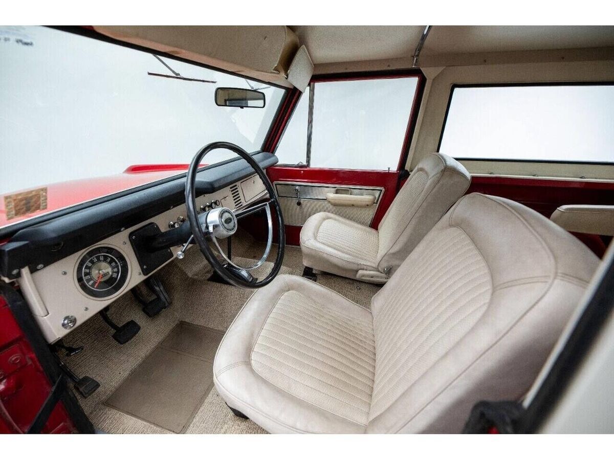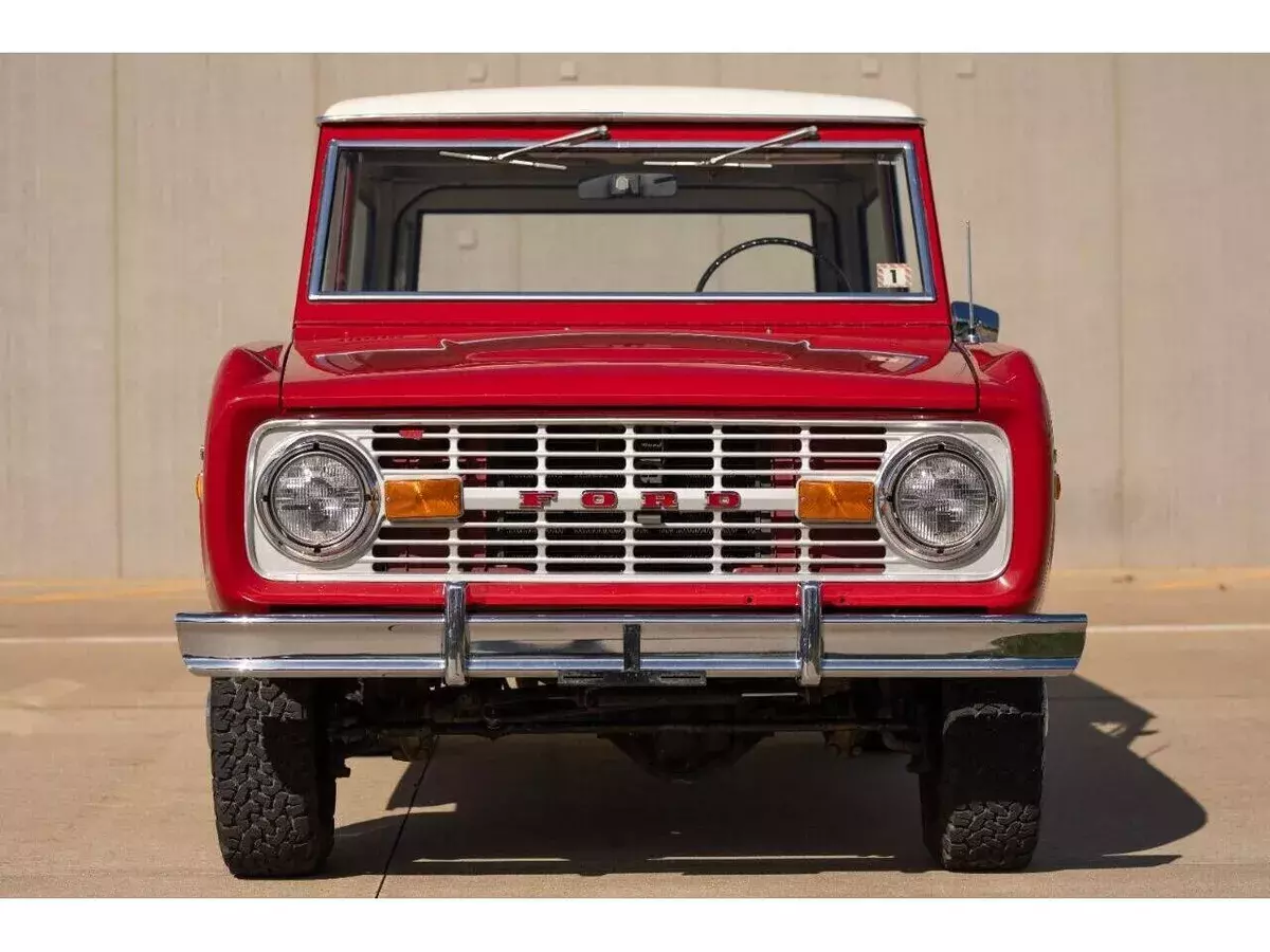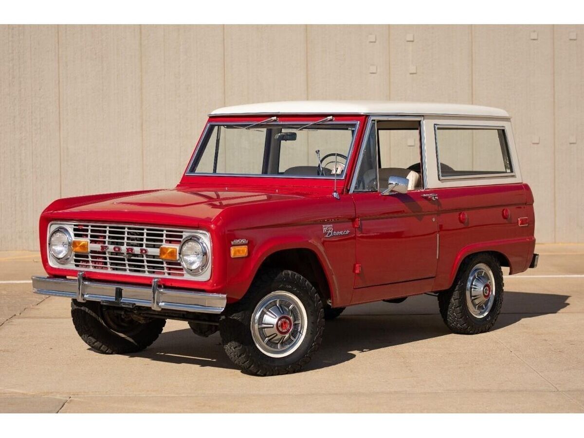 1971 Ford Bronco Sport Wagon 4X4 3 speed manual transmission Low mileage 46,406 very original SUV Original paint and interior Very rare. Optional Swing away spare tire mount tire, AM radio, Aux fuel tanks, two skid plates, rear bench seat . Only a two owner SUV, this is a superb example of an especially nice original low mileage Bronco Sport 4X4. a 302 V8 with an manual 3 speed transmission and a solid 4 wheel drive system. The original White Hardtop over the original Candy apple Red paint really shines and is the perfect color combination for this unique ride. The Chrome bumpers with front bumperettes are in great shape and the glass is free of any cracks. Inside is an original parchment rosette bucket seat interior, and rubber mats that looks nearly new. Features Detailed, smooth, and peppy 302 CID V8 Easy and smooth shifting 3 Speed manual Transmission Dana 4:10 Rear Differentials. This one includes Full Four Wheel Drive with Manual Front Locking Hubs Newer 15 inch Tires with stock hubcaps. The matching 5th wheel and spare are mounted on the optional swing away spare tire mount. Finished in the original Candy apple Red and Polar White. This is one of those rides that is almost too cute to pass up and you just see 'em all stock, especially with this low miles .