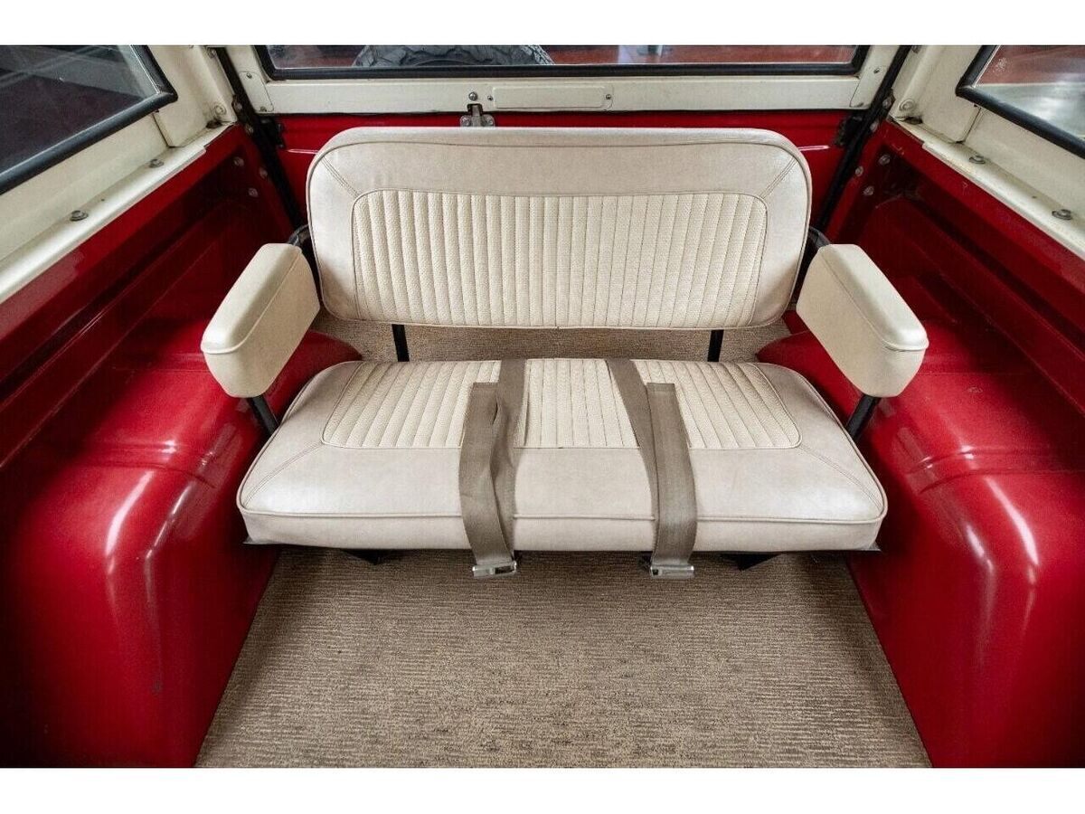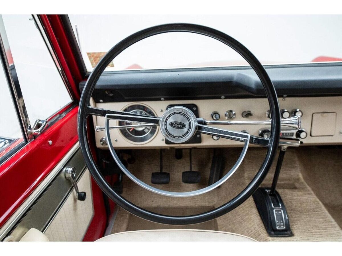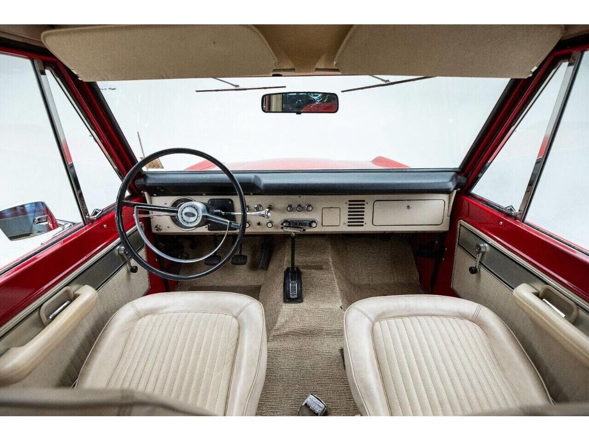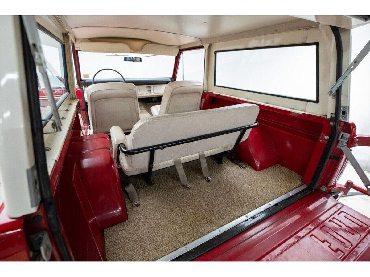1971 Ford Bronco Sport Wagon 4X4 3 speed manual transmission Low mileage 46,406 very original SUV Original paint and interior Very rare. Optional Swing away spare tire mount tire, AM radio, Aux fuel tanks, two skid plates, rear bench seat . Only a two owner SUV, this is a superb example of an especially nice original low mileage Bronco Sport 4X4. a 302 V8 with an manual 3 speed transmission and a solid 4 wheel drive system. The original White Hardtop over the original Candy apple Red paint really shines and is the perfect color combination for this unique ride. The Chrome bumpers with front bumperettes are in great shape and the glass is free of any cracks. Inside is an original parchment rosette bucket seat interior, and rubber mats that looks nearly new. Features Detailed, smooth, and peppy 302 CID V8 Easy and smooth shifting 3 Speed manual Transmission Dana 4:10 Rear Differentials. This one includes Full Four Wheel Drive with Manual Front Locking Hubs Newer 15 inch Tires with stock hubcaps. The matching 5th wheel and spare are mounted on the optional swing away spare tire mount. Finished in the original Candy apple Red and Polar White. This is one of those rides that is almost too cute to pass up and you just see 'em all stock, especially with this low miles .