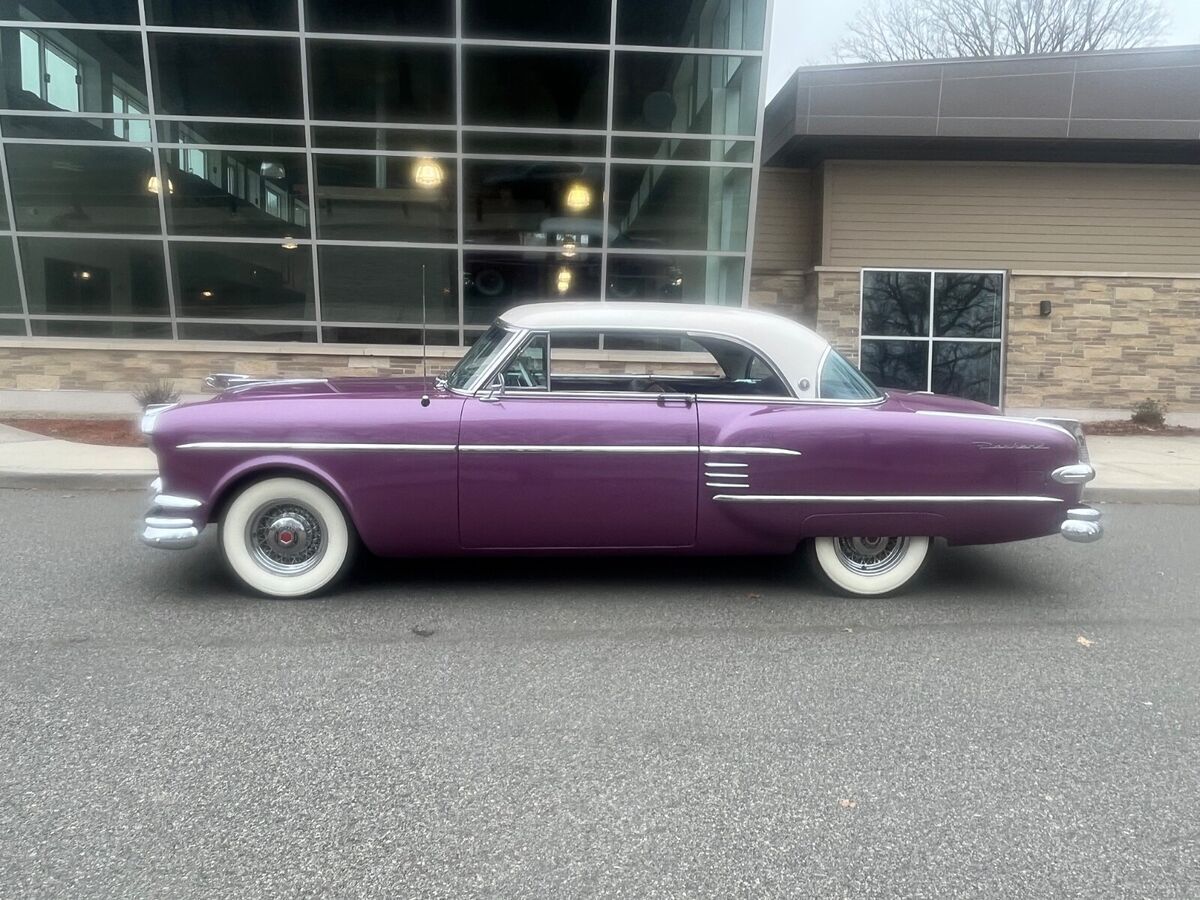 1954 Packard Pacific. Hard top coupe. 1 year model. 1 of 5 built this color carnation over amethyst. Only 3 in existence today. Straight eight cylinder, Automatic transmission. Power steering power brakes, Power seats, power antenna.