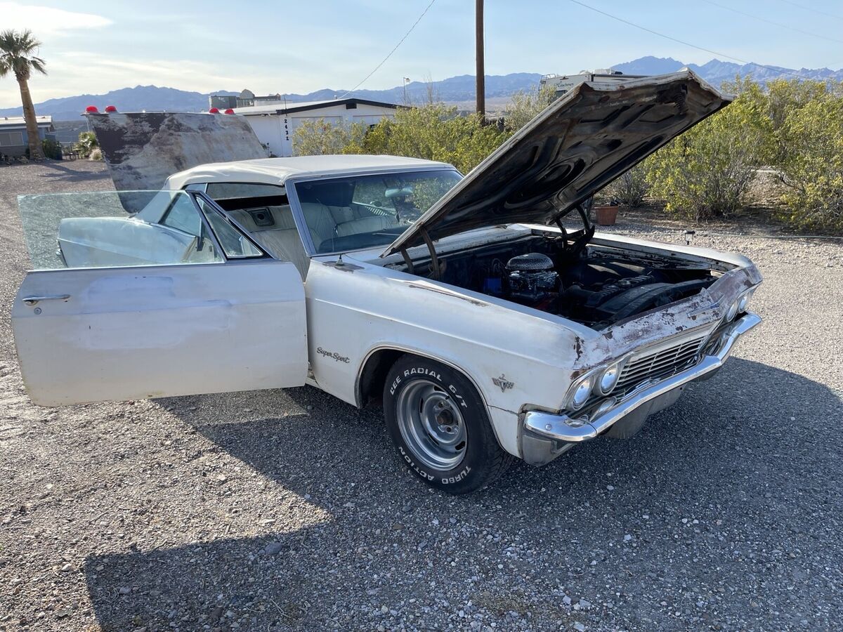 One owner SS 327/300 4 speed . Triple whit, Runs and drive, New top. The car really needs paint . It has spray can touch ups on top of the original paint . The 4 speed shifts nic, good clutc, 327 runs out good. Good brakes . It was kept up mechanically. The paint not so muc, Sounds mean with cherry bombs .