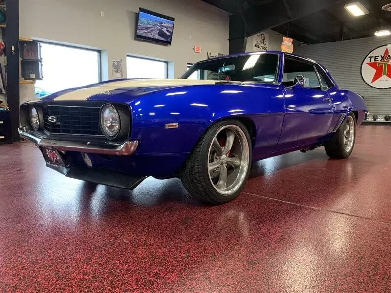 1969Chevrolet CamaroSS Custom This is an incredibly clean, well taken care of anddetailed restoration. The end result is easy on the eyes! The body on this car is super straight and has incredibly crisp lines! The contours are nice and smooth as well. As you look down the panels of this car you can really take in the beauty of a straight well painted car! The panel gaps line up good and both doors shut with ease as they should. The hood and trunk also shut and open without an issue! The paint that graces this beautiful body was laid out very well and looks nice! As pictures andwill show it reflects very well at any angle not to mention this custom blue looks amazing on a 69 body!The bumpers shine good right along with handles and grill sets this car offnicely!All of the glass on this car is clear, with minimal amounts of scratches. Both headlights and taillights are free of cracks and are very clear as well! This SUPER clean engine bayhosts a BUILT 6.0 motor with LS3 heads and has a nice Texas Speed cam with a good lope to it but not too radical. It is paired to a 4L80 trans with a 2800 stall. Engine management is handled by a Holly EFI system with GREAT start up, idle and wide open throttle! In the back you will find aMoser posi Rear end 410 Gears. This 69has been dressed up with all kinds of aluminum and chrome as well.It has been gone through very well with all new hoses, belts, fluids and fuel lines from front to back! This car breathesthrough a setof Speed Engineering headers and a Magna Flo Exhaust with X Pipe as well that sound incredible at idle with the cam.It only gets better as you get into the gas!This car pulls great through every gear and is an incredible running and driving vehicle with only 500 mile on the driveline that turns heads everywhere it goes and puts heads against the seats every time you get into the gas! With power steering, power disc breaks, new U joints and balanced driveshaft and a front-end that is ALL new with no squeaks, pops or wobbles.You are going to love driving this car! The interior of this car is super clean as well with near perfect bucket seats! These seats do not even appear to have been sat on before!The carpet is brand new and free of rips and stains. The headliner is nice and free of stains as well. The center council looks incredible.The door panels have been newly recovered and are free of rips. All hardware works as it should and looks great! As pictures show these Dakota Digital gauges are super clear and easy to read! The dash mat is brand new and free of any UV damage. The Staggered Bosswheels wheels wrapped in new rubbergive this car an amazing stance and the ride is super nice. The trunk is SOLID, patch free and clean as well as pictures will show. Take a look at the underside pictures to see how clean and solid this car is! The frame is powder coated, sub-frame connectors were added and font clip boasts upper and lower tubular controlarms with polly bushings. This car drives like a DREAM! This car is ready to drive with no work needed and is one of the nicest driving, not to mention looking 69s in the nation at its price! https://youtu.be/Y_xnLXcikQM?si=0F4NkloN7Zap4HXm If you have any questions please call Bobat701-527-7721 Or email rides@rides-autosales.com GOT A TRADE WE’RE INTERESTED!! THANKS FOR LOOKING!!
