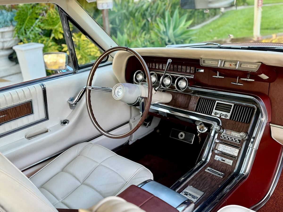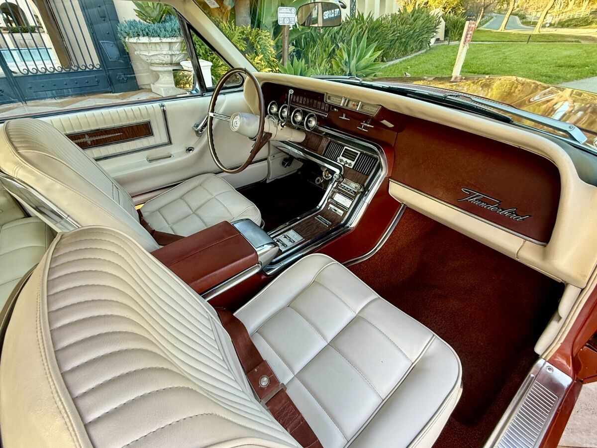 Two tone white / emberglo thunderbird interior is very nice and feels like a time capsule. The dash, headlinder, carpet, door panels and seats are in good condition. All of the interior brightwork and trim are in great shape. Clean and comfortable, no rips and no stains.