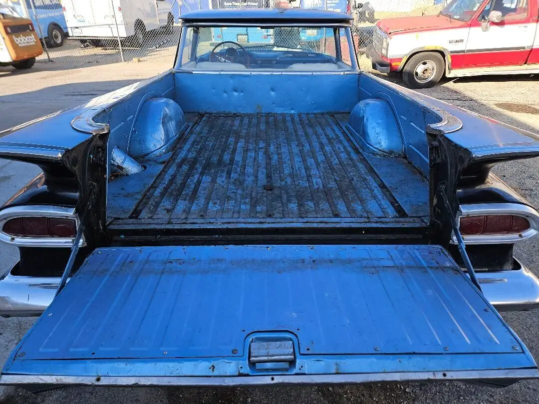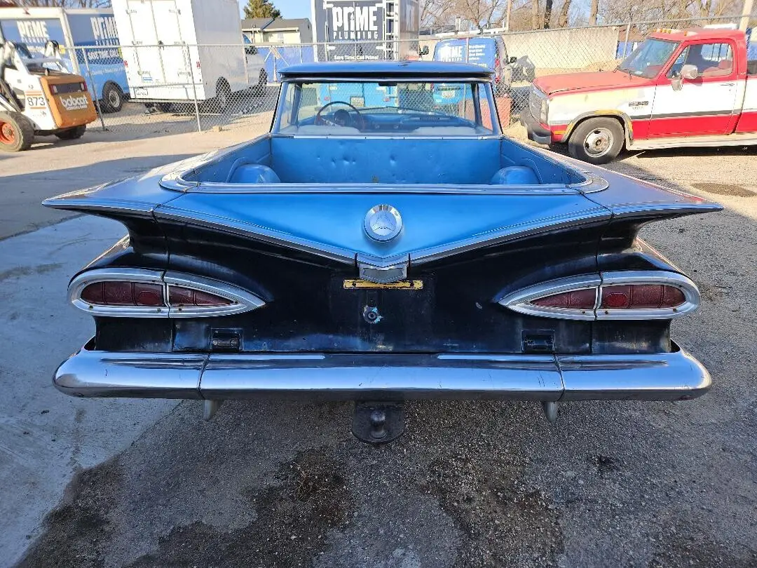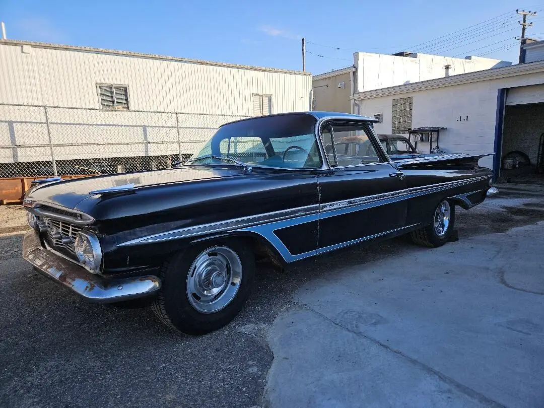 1959 Chevrolet El Camino 396 BBC Muncie 4 speed runs good trans shifts in all gears. Car runs & yard drives. Master cylinder leaks down after a week or so. Fill it up and the car will stop. I will need work before driving it on the road. I had the original Harrison radiator re-cored with a heavier core. New belts, hoses, water pump. New battery about 6-7 months old. Car is running on a can. Never put fuel in the tank. Condition unknown. I was going to replace it if needed. Carb is old and does run but has a leak in the float bowl fuel level screw. 15 X 8 original Corvette rally wheels with brand new 275/60's fronts are 15 X 7 original rims. Caps and rings are pretty nice. Needs a right door glass (broken) Right vent wing window (cracked) I have a good used replacement included. Left lower door hinge is worn. I have both left sides hinges used that are included. I have a blue OEM steering wheel included. Exhaust needs finished. Chevelle/GTO seats in good condition. All the interior is there. Could use better door panels. Dash/gauges are all there. Headliner is decent small spot pulling away from the driver side. This was originally from Texas and was transported to Maryland in 2006.Any questions I will be happy to answer I am sure I missed something.Payment: I would prefer cash on pickup or a bank wire transfer. I would like a small deposit of $200.00 to secure the transaction. Buyer is responsible for all shipping and pickup/towing/transportation. I am not getting involved with shipping. Car must be paid and picked up with in 10 days after the sale ends unless agreed case by case. I am in Pasadena, Maryland 21122. 20 miles North of Annapolis Md. 20 miles south of Baltimore.Thanks for looking.