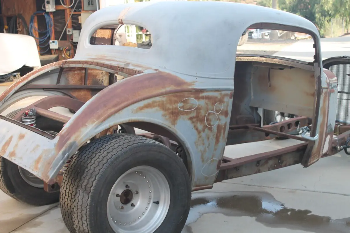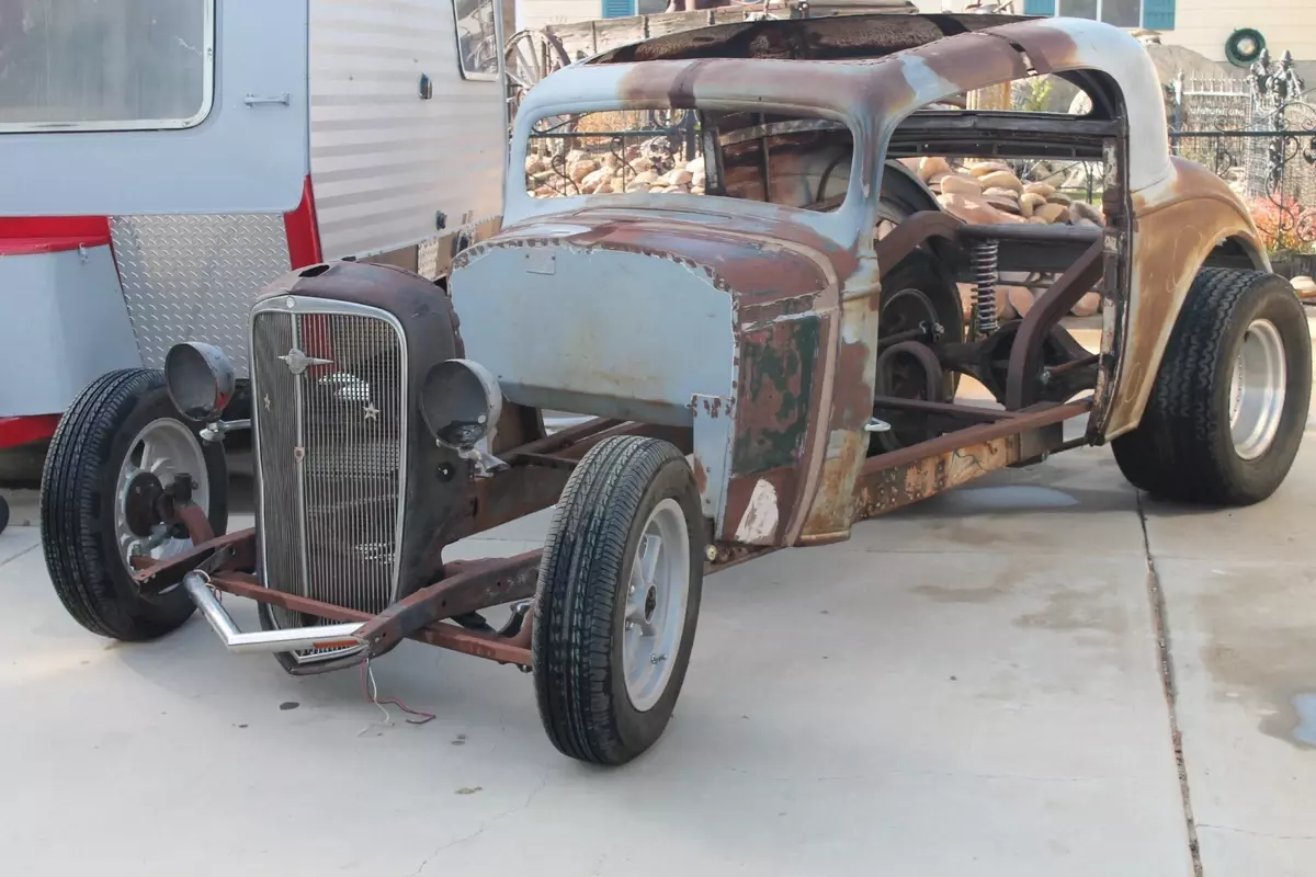 Tires on the back are Centerline wheel are cracked on the side walls. Have 2 good Mickey Thompson Sportsman 31-16.5 on Weld Racing Wheel. Front Rocket 4" by 15" wheel and tire are new.Top of driver's door and roof have been cut, due to door alignment problems possible?? see picturesDoor needs to be braced.Light surface rust and no cancer.Car is California registered (non-op), has Clean Title and comes with 1935 license plates.Please ask any questions you may have. Local pick up or ?$500 dollar non refundable deposit due within 24 hours at time of purchase. full payment to be made via CASH ONLY. Please do not offer Venmo, Zelle or other payment types. Full payment due with in 7 days of purchase. Buyer must pick up vehicle within 2 weeks. If buyer is arranging shipping, payment in full must be made prior to pickup.