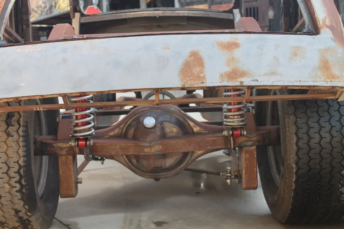 - Frame has been boxed and has done a Chassis Works rear frame, 4 link, locator bar, coil over shocks, drive shaft loop, package installed.