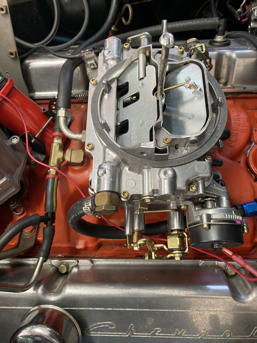 327 V8 with upgraded aluminum heads and intake even though it has a big block hood