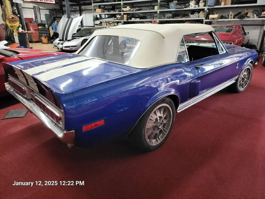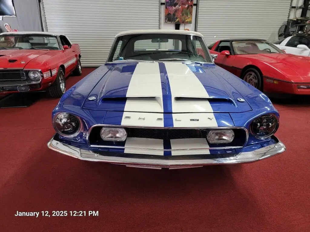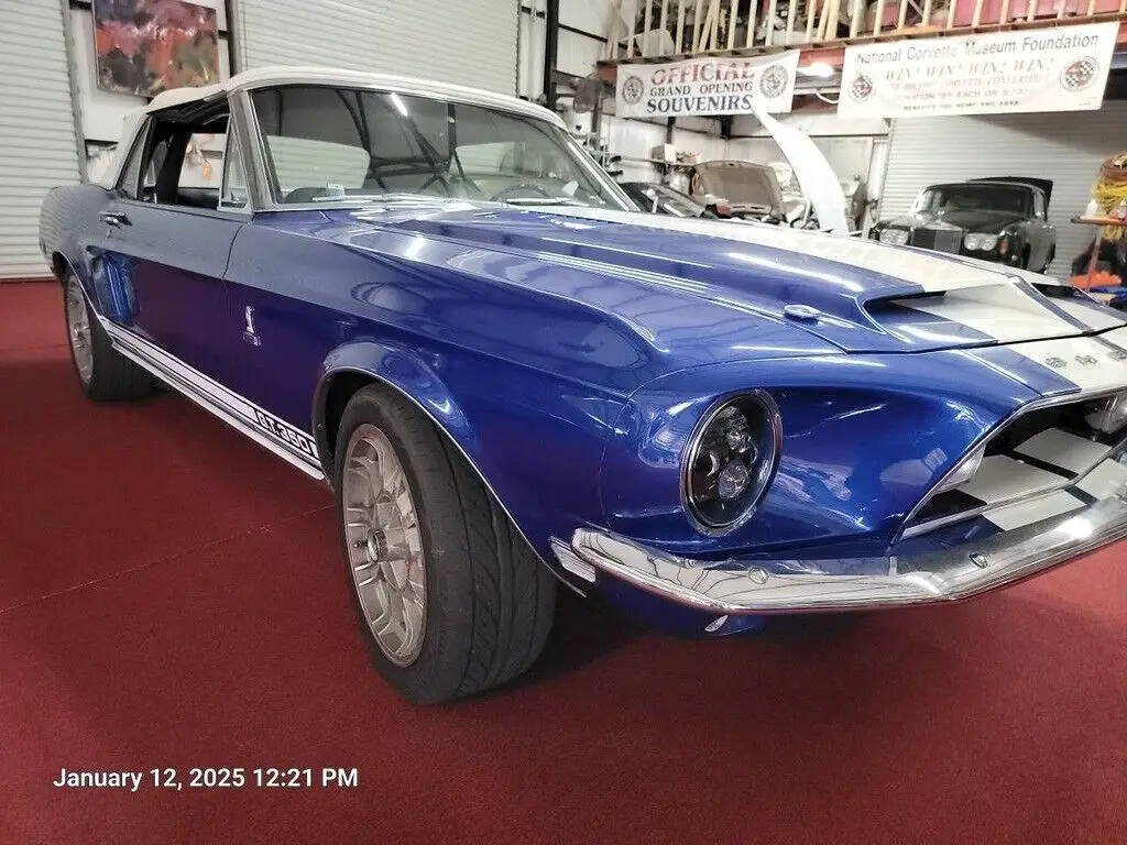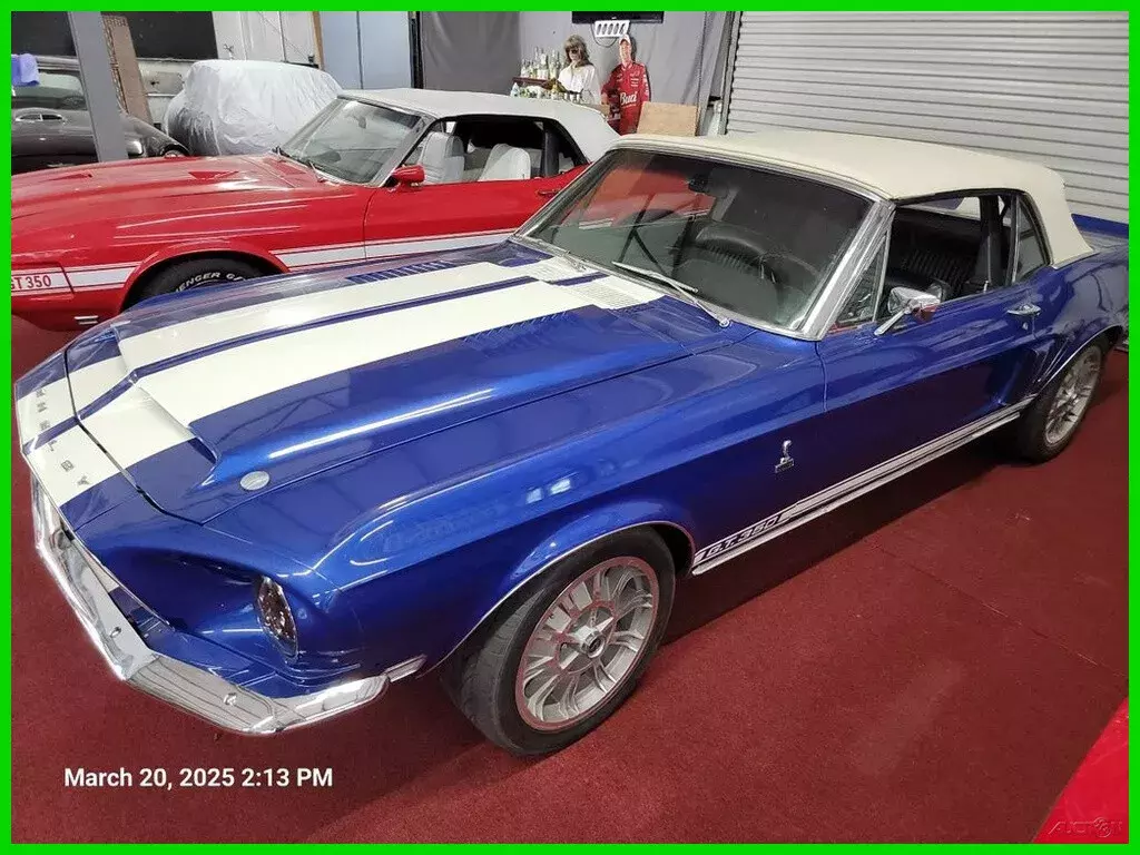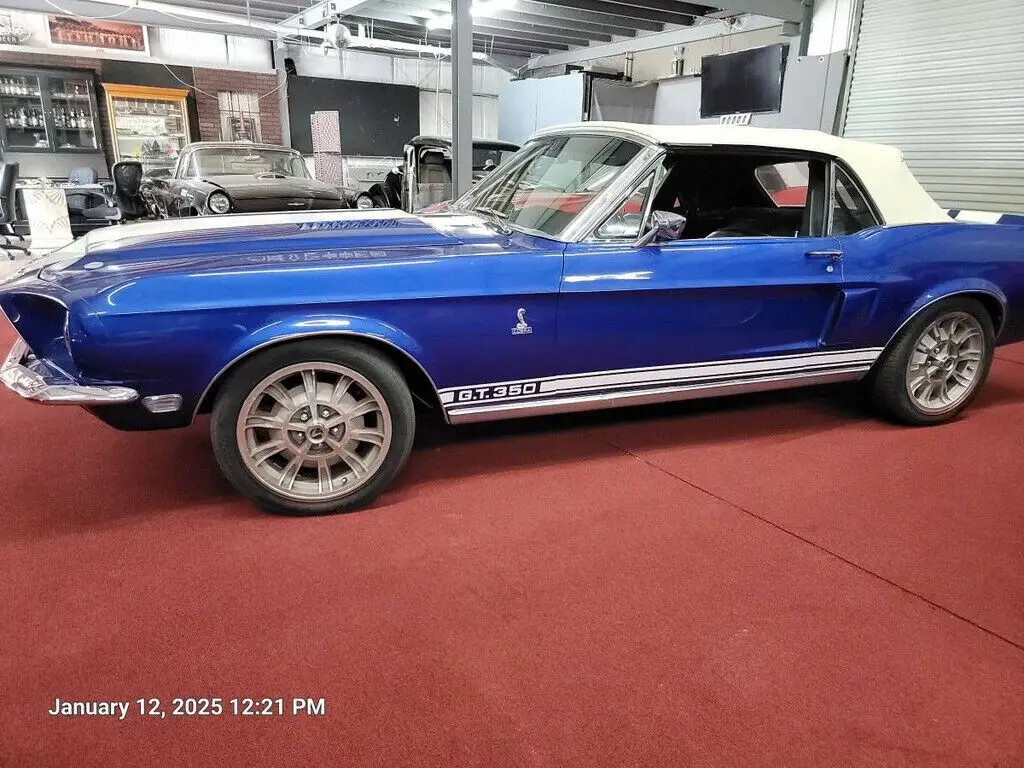 1968 Ford Mustang Shelby GT350 Recreation Convertible For Sale in Lutz, FL 33548 This Mustang is powered by a V8 engine paired with an automatic transmission. The odometer reads 100,000 miles and is shown with a blue exterior with white striping and a black interior. This vehicle has been well-maintained. Features Power Soft Top Leather Interior Air Conditioning AM/FM Audio System Power Steering Power Brakes Roll Bar Owner’s Notes “This Shelby recreation has been done