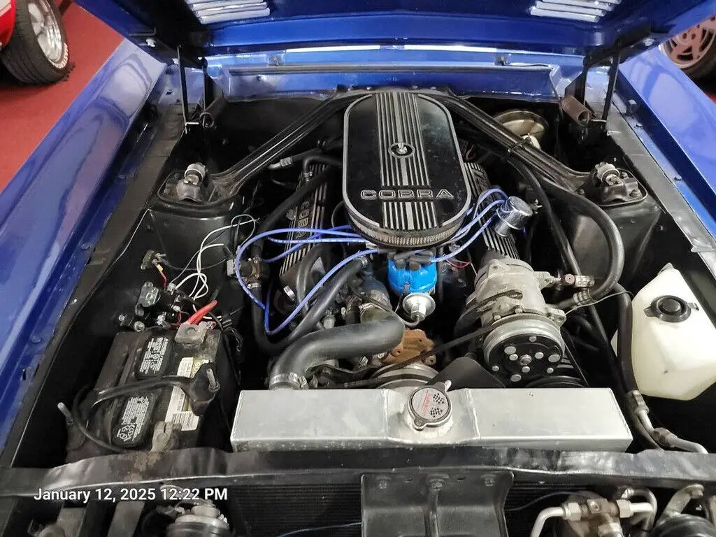 “This Shelby recreation has been done well. Correct roll bar, power steering, power brakes, automatic transmission. Power top, needs some assistance both up and down. Cold air conditioning. Body in very good shape. The interior is done well and in very good shape. This is in very nice driver condition. Please have this car inspected if you wish to purchase. Engine and engine compartment clean, as it should be. Paint is in good shape. See undercarriage pictures.”
