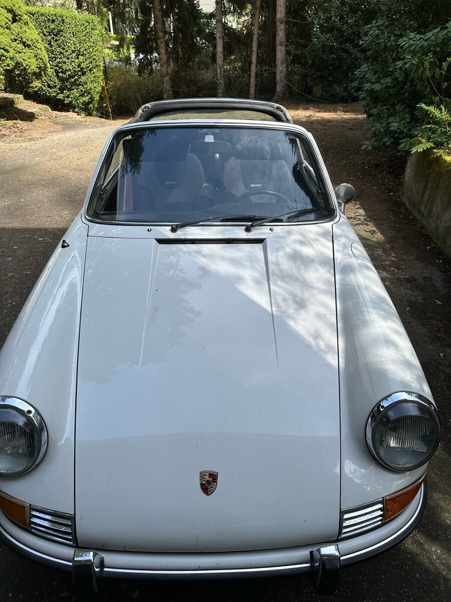This 1971 Porsche 911 T Targa Coupe is an original vehicle with a clean title and a cream color. The car has a mileage of 68776 and has been well-maintained by its current owner who has had it for over 25 years it would appear - he may be the original owner. The interior has been updated with Recaro Seats but the original seats are included as are other parts as shown. We have all the keys. The engine number is 6115235.