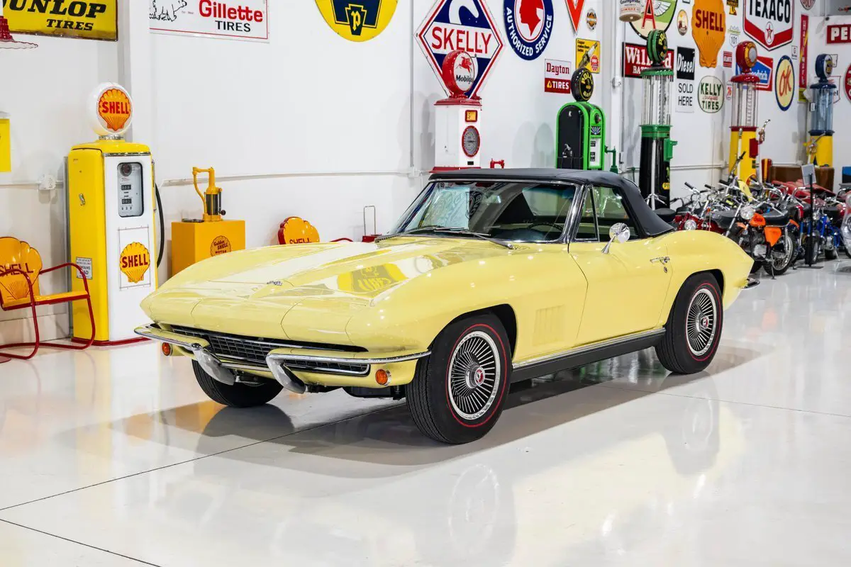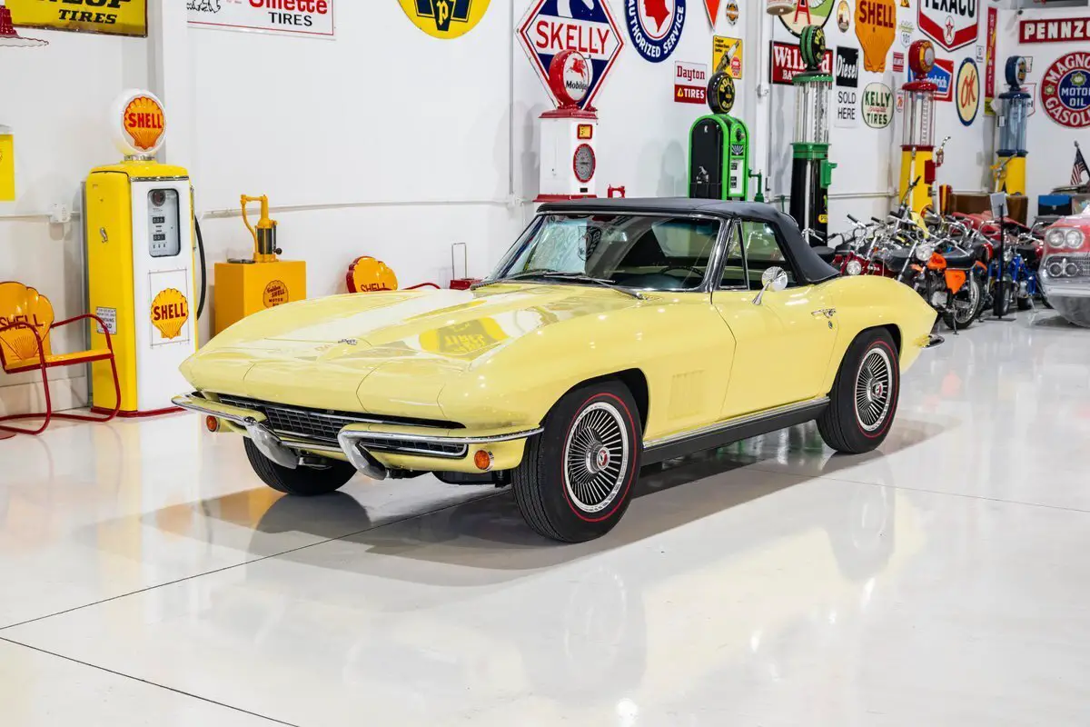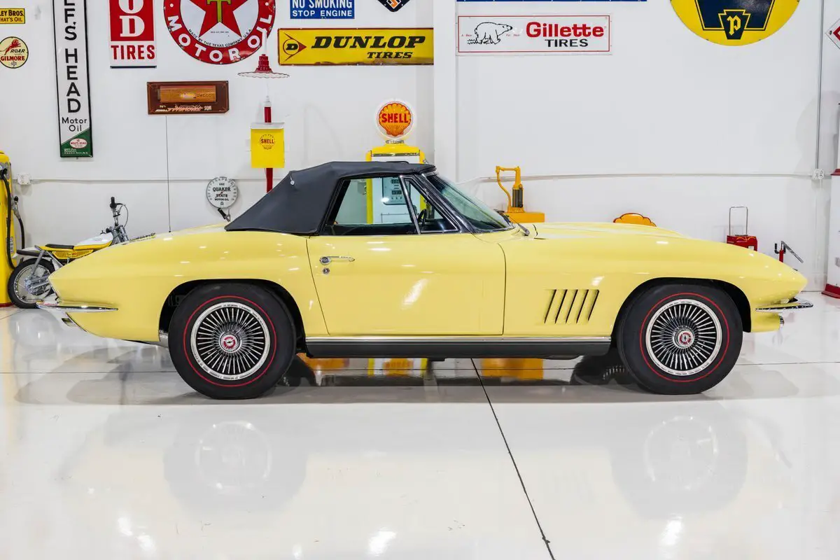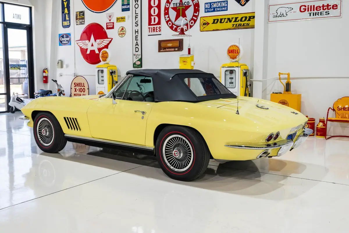 See this vehicle on HotRodCollection .com This vehicle is a recent arrival! "Coming Soon" vehicles usually take 4-6 weeks to complete their inspection, maintenance, etc. In the meantime, they are available for inspection. Vehicles become eligible for a 72-hour hold with deposit after any needed reconditioning services are completed. • 5.7L Crate Engine • Aluminum Heads • Aluminum Intake Manifold • Ceramic Coated Headers • Vintage A/C • High-Capacity Aluminum Radiator • Power Steering • Power Brakes • Correct Sunfire Yellow Paint Color as Per Body Tag Code "984" • Correct Black Vinyl Interior as Per Body Tag Code "AA" • AM/FM Delco Radio • Clock • 67 Corvette-Style Aluminum Bolt-On Wheels • 5 New Reproduction Firestone Super Sports Wide Oval Redline Tires • Spare Wheel and Tire is an Aluminum Bolt-On With Firestone Redline to Match the 4 wheels and Tires on the Car. This is a very nicely restored authentic Sunfire Yellow Corvette Roadster. Several modern updates have been completed to make the car a reliable daily driver, and one to enjoy as a head-turner at any car meet.