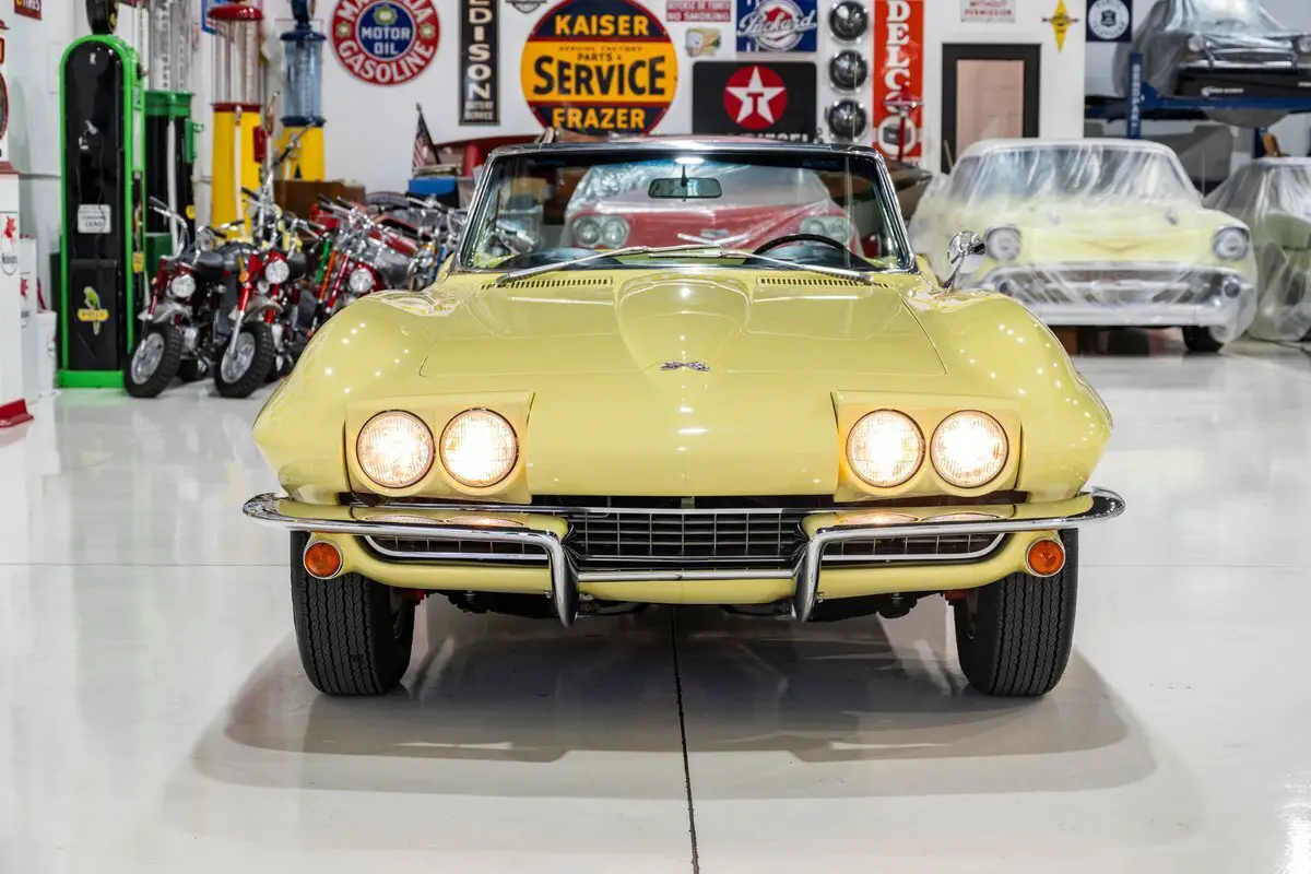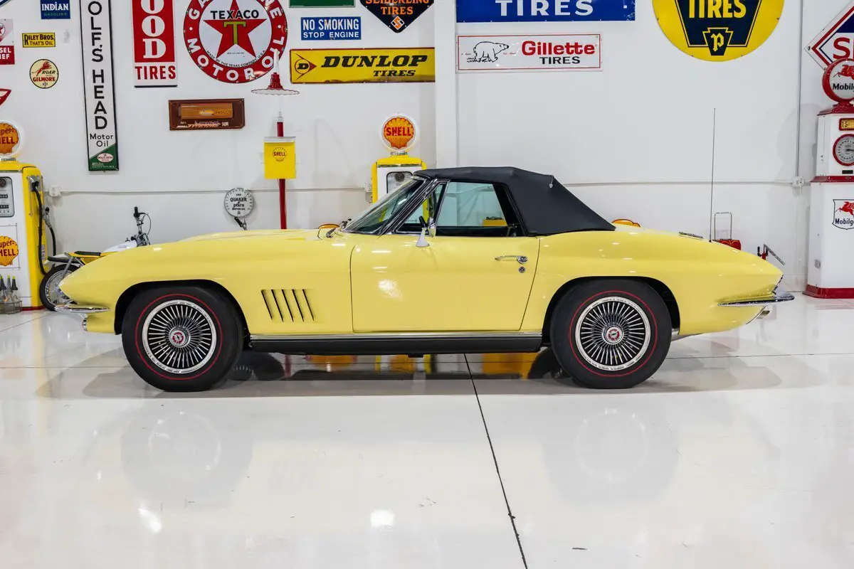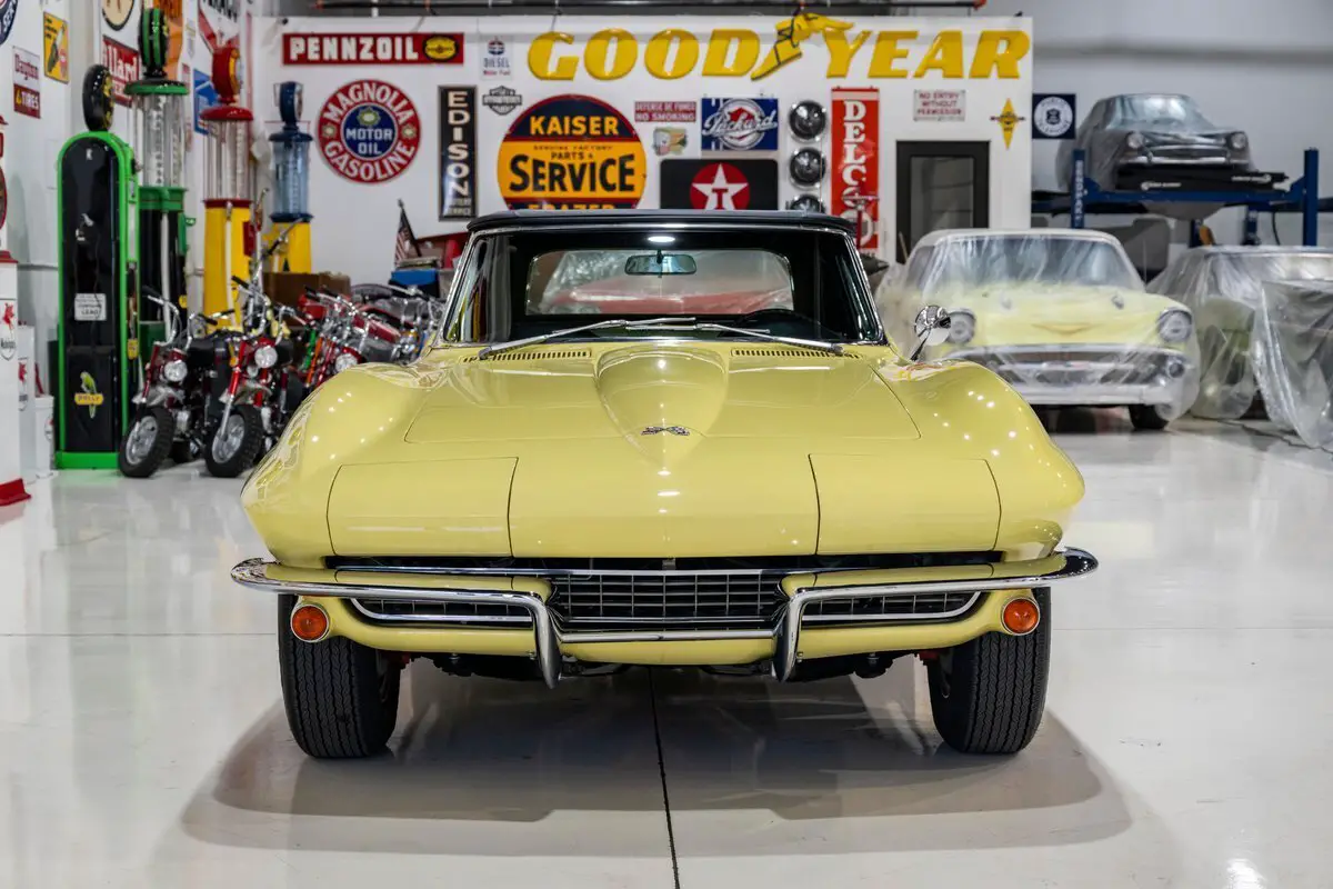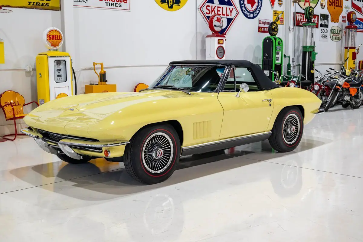 See this vehicle on HotRodCollection .com This vehicle is a recent arrival! "Coming Soon" vehicles usually take 4-6 weeks to complete their inspection, maintenance, etc. In the meantime, they are available for inspection. Vehicles become eligible for a 72-hour hold with deposit after any needed reconditioning services are completed. • 5.7L Crate Engine • Aluminum Heads • Aluminum Intake Manifold • Ceramic Coated Headers • Vintage A/C • High-Capacity Aluminum Radiator • Power Steering • Power Brakes • Correct Sunfire Yellow Paint Color as Per Body Tag Code "984" • Correct Black Vinyl Interior as Per Body Tag Code "AA" • AM/FM Delco Radio • Clock • 67 Corvette-Style Aluminum Bolt-On Wheels • 5 New Reproduction Firestone Super Sports Wide Oval Redline Tires • Spare Wheel and Tire is an Aluminum Bolt-On With Firestone Redline to Match the 4 wheels and Tires on the Car. This is a very nicely restored authentic Sunfire Yellow Corvette Roadster. Several modern updates have been completed to make the car a reliable daily driver, and one to enjoy as a head-turner at any car meet.