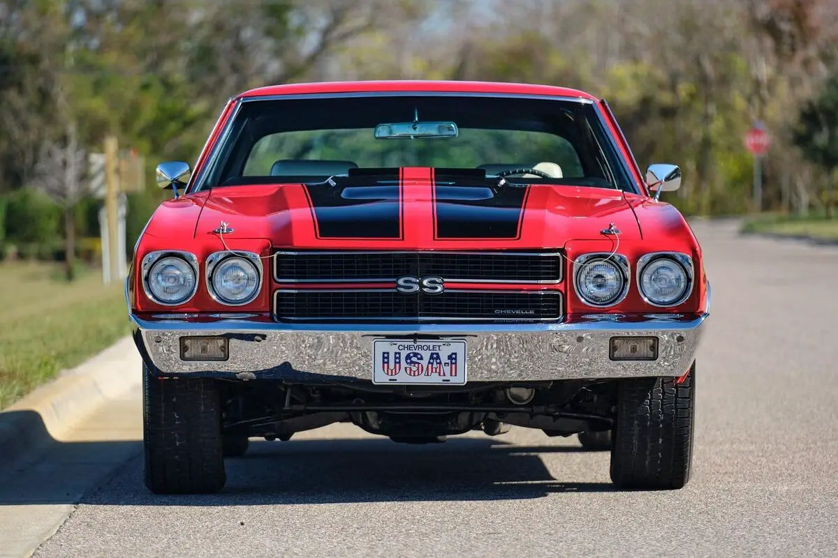 1970 Chevrolet Chevelle SS Freshly Restored with a 502 Big Block V8 Crate Engine, 396, Turbo 400 Automatic Transmission, 12 Bolt Rear End, Power Steering, Power Front Disc Brakes, 15-inch SS Wheels with BF Goodrich White Letter Radial Tires, Front and Rear Sway Bar part of F41 SS Suspension, Factory radio, Great sounding Dual exhaust with factory style manifolds, Tach and Gauges, Functional Cowl Induction Hood, Recently Repainted with high quality paint job and Finished in Correct Color Code 75 Cranberry Red with Correct Interior Trim Code 791 Ivory Bucket Seat interior with center console. This is a stunning color combination! All chrome and glass in great condition, all factory trim present and in great condition, SS gauges, runs great! This car is a True SS with L on the Trim Tag. 1970 Chevrolet Chevelle SS – Iconic American Muscle, Freshly Restored This 1970 Chevrolet Chevelle SS is a freshly restored masterpiece that embodies the power, style, and heritage of classic American muscle cars. Featuring a meticulous restoration and an upgraded powertrain, this Chevelle SS is the perfect blend of authenticity and performance. Performance & Powertrain - Under the hood lies a 502 Big Block V8 Crate Engine delivering incredible power and performance, paired with the reliability of a classic 396 setup. - Turbo 400 automatic transmission ensures smooth, high-performance shifting. - A durable 12-bolt rear end provides robust power delivery to the rear wheels. - Factory-style manifolds and a great-sounding dual exhaust system create an iconic rumble. - Equipped with the F41 SS suspension package, including front and rear sway bars for improved handling and stability. Features & Options - Power steering makes navigating this powerhouse effortless. - Power front disc brakes provide reliable stopping power to match the car's performance. - Period-correct 15-inch SS wheels are wrapped in BF Goodrich white-letter radial tires for a classic muscle car look. - Functional cowl induction hood adds both aesthetic appeal and performance enhancements. Interior & Comfort - Finished with the correct interior trim code 791, the stunning ivory bucket seat interior includes a center console for added comfort and style. - Factory SS tach and gauges ensure you stay informed about your engine’s performance. - Retains the factory radio for an authentic interior experience. - The interior is restored to a high standard, maintaining a period-correct aesthetic while offering comfort and refinement. Exterior & Paint - The car is painted in its correct color code 75 Cranberry Red, recently refinished with a high-quality paint job that makes it a standout. - All chrome and factory trim are present and in excellent condition, adding to the car’s stunning appearance. - The glass is in great condition, providing clarity and visibility. Authenticity & Documentation - This car is a true SS, verified by the L on the trim tag. - The Cranberry Red exterior paired with the Ivory interior creates a timeless and eye-catching color combination. Why This Chevelle SS? This Chevelle SS has been restored to an exceptional standard, offering both show-quality looks and exhilarating performance. The powerful 502 Big Block engine, factory-correct details, and classic styling make it a collector's dream and a joy to drive. Whether you’re a dedicated enthusiast or a newcomer to classic cars, this Chevelle SS is ready to impress. Don’t miss your chance to own a piece of American automotive history, beautifully restored and ready to hit the road or the show circuit! While we do our best to provide the highest quality muscle cars with an honest and reliable description and realize the importance of transparency when selling vehicles. That being said, we have not built, modified, changed or personally owned this vehicle. Whether this vehicle is consigned or owned by Past & Present Motor Cars we do not know the vehicles complete history since new. We want to be clear and try to answer any questions our customers might have prior to purchasing. Additionally, we not only welcome but we encourage 3rd party independent inspections. Please inquire prior to purchase to make sure the advertised vehicle has not already been sold. We list our vehicles on multiple websites and a vehicle can sell at any time. If a customer chooses to purchase sight unseen (many of our customers choose this option) the customer accepts the vehicle AS IS and WHERE IS and understands we cannot address concerns after purchase. For this reason, it's important all concerns are addressed prior to purchase. We make every effort to present accurate and reliable information, but use of this information is voluntary, and should only be deemed reliable after an independent review of its accuracy, completeness, and timeliness. It is the sole responsibility of the customer to verify the existence of options, accessories and the vehicle condition before time of sale. Financing is Available with low rates and Vehicle Shipping is available from our Showroom to your Garage. A Classic Car Warranty is Available for Purchase from a 3rd Party. Please speak to our Sales Associate or Company Representative for more information. Our team is working and available anytime by Phone or Text for your convenience at 407-559-7759. Thank you for your interest!