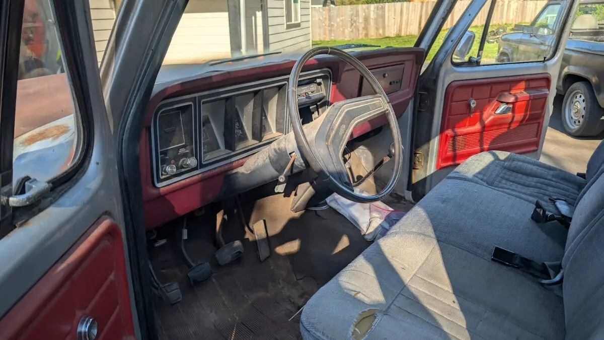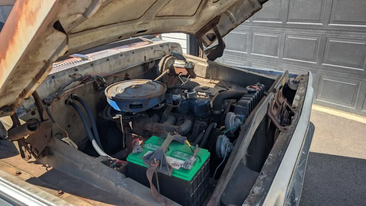 This truck would make a perfect start for a project, lowered with the paint buffed out, or just leave it how it is and drive it. The lights and turn signals work, wipers work, horn works, no radio, The transmission has a bit of noise in 1st, mostly due to it being straight cut gears. The engine has a slight lifter tick, probably needs some adjustment on the rockers. The tailgate needs the latched straightened/ fixed on the passenger side. It had a hay bale dropped on it and does not close right.