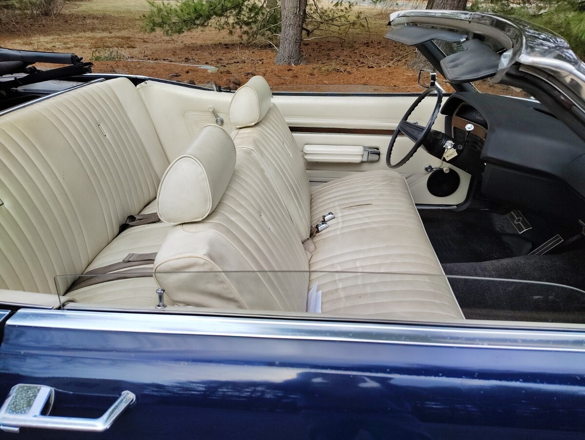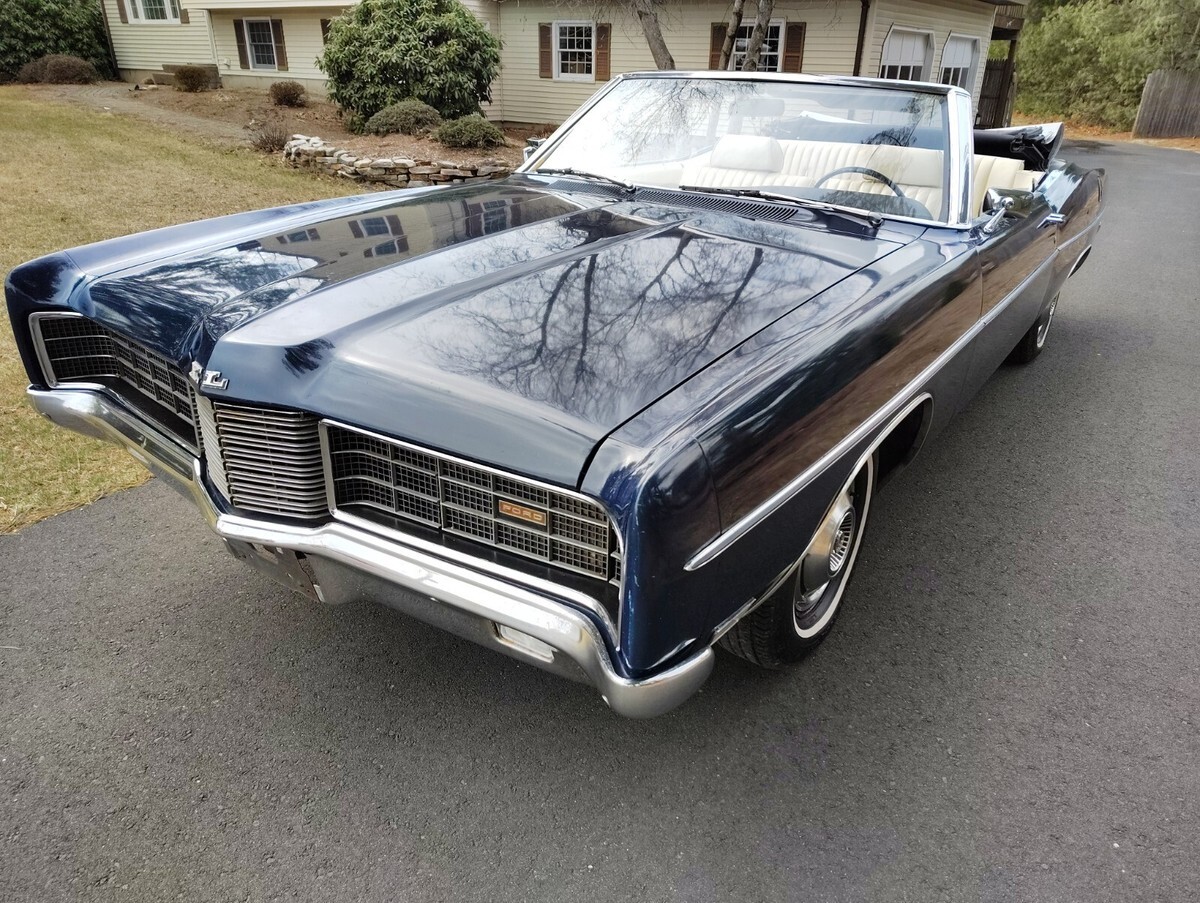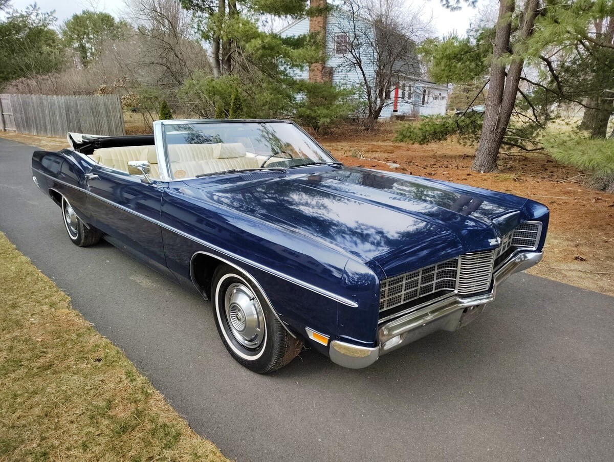 1970 Ford XL Convertible 351w, automatic, one family owned 16,300 original mile survivor purchased brand new at Crailo Ford by Mrs Bender on May 20, 1970. Rare car 1 of 44 built with this color trim code have Marti report, Dark blue with white power top and white interior, factory disc brakes, power steering, factory radio delete believed to be the only one built with radio delete. Have original Ford dealership sales booklet, protecto plate, and service records, original paint, interior, spare tire, single exhaust, engine bay original hoses, clamps, no spray can touch ups, has factory OK stamped on block, interior all original normal cosmetic wear split on seat, crack on dash, drives great, tires look like brand new but were put on in 1988 when car had 14,000 miles, original paint has some patina spots as expected on a 55 year old car and has a small imperfection on the passenger door, convertible top is excellent condition was replaced 15 years ago due to age discoloring top works but goes up slow needs hydraulic fluid added, original power headlights open as they should. Owned by one family since new until I purchased it last year have clean title in my name, ready for summer cruising and car shows.