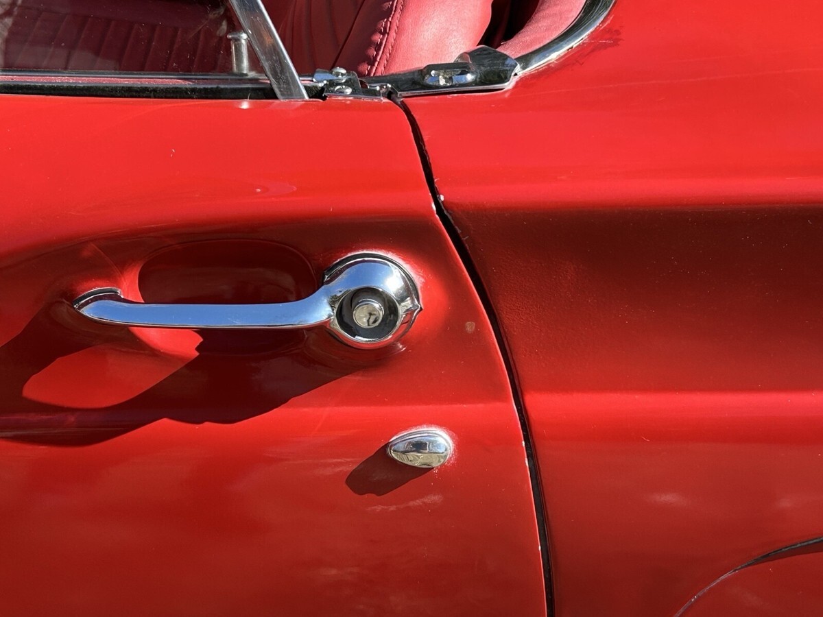 About 500 miles since body off restoration. Car was found in one of those storage unit auctions. Not by me. It apparently had not been registered since the 70s there is a partial inspection sticker still on windshield. There was virtually no rust I welded in (2) 10 inch square patches under the seat. That’s it. I hand stripped the exterior. I also hand stripped the undercoating. That was fun. Kind of scarce 3 speed manual transmission. Flame red paint under carriage is also painted flame red