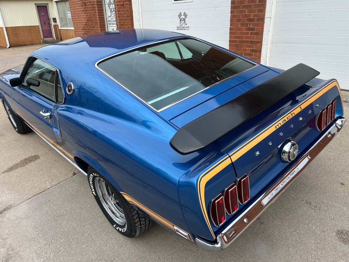 https://youtu.be/PxsM7f4ql8khttps://youtu.be/eAkS_JBVGP4THIS 1969 MACH-1 IS A BEAUTIFUL CAR THAT WILL PROVIDE YEARS OF ENJOYMENT!THIS AWESOME FORD MUSTANG IS IS PRICED BELOW CURRENT MARKET VALUE ANDWILL ONLY INCREASE IN VALUE AS TIME GOES ON. IF YOU ARE FROM OR LIVE NEAR CLEVELAND, OHIO, WE URGE YOU TO VISIT OUR SHOP AND INSPECT THIS CLASSIC MUSTANG FOR YOUR SELF PRIOR TO BIDDING.WE ARE CONFIDENT THAT YOU WILL NOT BE DISAPPOINTED WITH YOUR INVESTMENT.IF YOU CANNOT COME BY AND INSPECT THE VEHICLE IN PERSON, THEN PLEASE FEEL FREE TO ASK AS MANY QUESTIONS AS YOU’D LIKE OR TO REQUEST ADDITIONAL PICTURES. THIS IS AN INVESTMENT GRADE QUALITY MUSTANG, AND WILL GO QUICKLY. THANKS FOR LOOKING AND GOOD LUCK! OUR STORE IS LOCATED AT3945 CHURCH STREET IN WILLOUGHBY, OHIO, JUST 15 MINUTES FROM DOWNTOWN CLEVELAND.OUR STORE HOURS ARE MONDAY THROUGH FRIDAY, 9-5, AND SATURDAY FROM 9-3.OUR TELEPHONE NUMBER IS1-440-602-7200. FOR MORE INFORMATION ABOUT US, PLEASE SEE OUR SITE AThttp://www.northcoastautorestoration.comWE HAVE SPECIALIZED IN CLASSIC CAR RESTORATION AND SERVICE FOR APPROXIMATELY 30 YEARS AND HAVE A REPUTATION AS MUSTANG SPECIALISTS. THE PICS IN THIS AUCTION ARE OF THE ACTUAL CARTHANKS FOR LOOKING AND GOOD LUCK BIDDING ON THIS AMAZING 1969 MUSTANG MACH-1Terms of Sale: By bidding on this vehicle, you are hereby entering into a legal and binding contract to purchase the vehicle from Northcoast Auto Restoration. Vehicle is sold in as is where is condition:BUYER IS RESPONSIBLE FOR VEHICLE TRANSPORTATION COSTS ALTHOUGH IF DESIRED, WE MAY ARE ABLE TO HELP ARRANGE DELIVERY AND OR TRANSPORT.