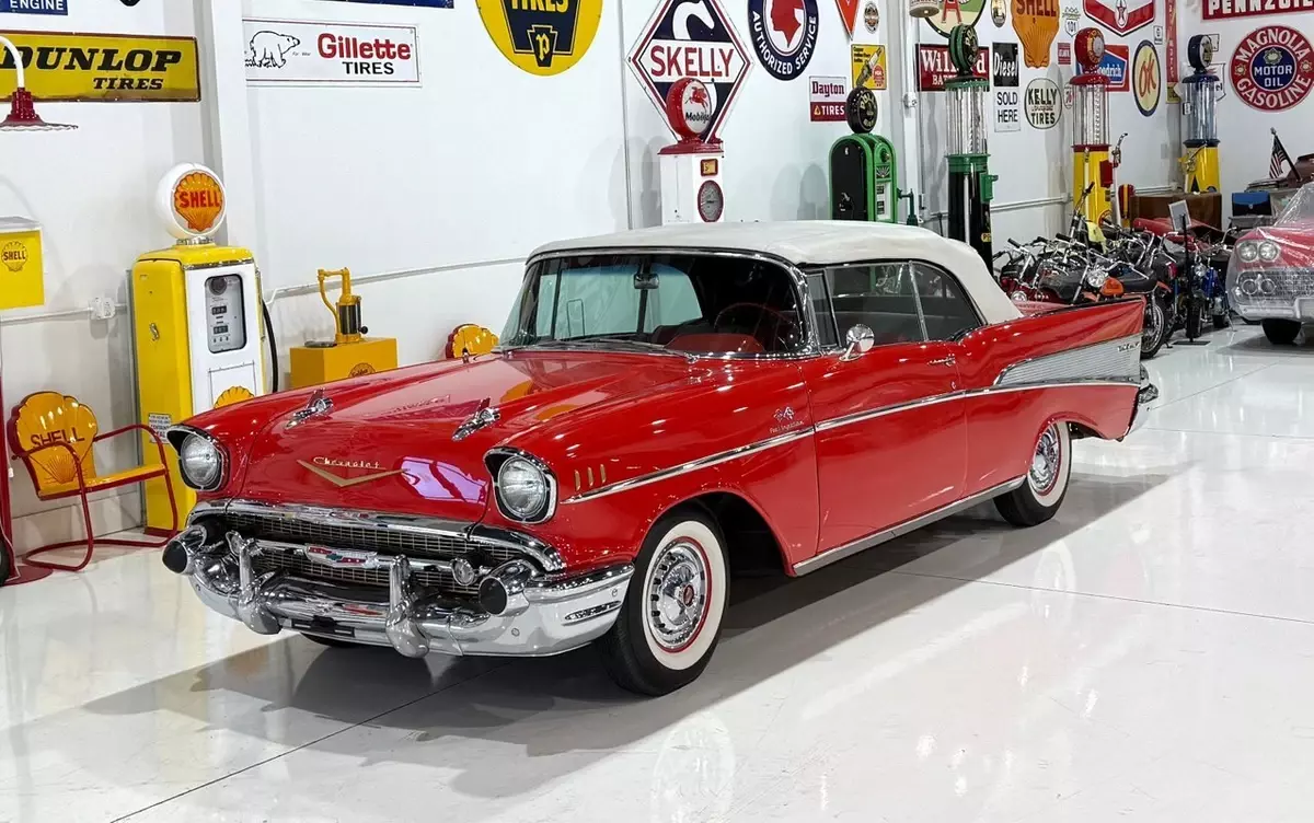 This vehicle just arrived! A full set of photos, video and description are coming soon. Available now for inspection. "Coming Soon" vehicles usually take 4-6 weeks to complete reconditioning, photos, and video. In the meantime, they are available for inspection. Vehicles become eligible for a 72-hour hold with deposit after any needed reconditioning services are completed. See on HotRodCollection .com • 1 of only 68 Factory Fuel-Injected '57 Bel Air Convertibles • 283 HP 283 CI • Equipped with the Code EK Duntov Solid Lifter Cam • Code 803 Matador Red Exterior with Red and Silver Interior • White Convertible Top • Power Top Option • Red Top Boot • Comprehensive Restoration in the late '90's by Ron's Restorations in Arkansas • 3-Speed Manual on the Column • AM Radio • 7.40 x 14 Reproduction U.S. Royal Safety 800 Bias-Ply Whitewall Tires • Correct Bel Air Spinner Hubcaps over steel wheels • Fender Skirts • In-Dash Clock Here's a great example of one of the most recognizable classics of all time – the legendary '57 Chevy Bel Air. Gorgeous and dramatic from every angle, the '57 is arguably the pinnacle of styling excellence among the Tri-5 Chevys. Part of the reason the '57 is red-hot popular is because it has it all – the most evolved of the '50's rear fins, Frenched headlights, the newly-introduced small block V-8 – at a time when most cars still had six cylinders, as well as sweeping, rocket-inspired side styling, and one of the most attractive interiors and dashboard layouts ever come out of Detroit. This particular example has even more to offer. Besides being finished in stunning red on red with a white power top, it was one of only 68 Bel Air convertibles made with factory fuel injection – which was extremely advanced and virtually unheard of in the '50's. Developed by Chevrolet engineers in conjunction with Rochester Automotive, this pioneering marvel made it onto a few lucky Bel Airs and Corvettes in time for the 1957 model year. When specified with the Duntov solid-lifter cam like this example was, the engine output reached the magical one horsepower-per-cubic inch plateau. Rated at 283 HP from its 283 cubic inch engine at a time when most cars had under 200 HP, it's no wonder these were the cars to beat on the streets, the strips, and various motorsports events around the country. The star of countless TV and movie features, a front-runner in early drag racing, and always a regular at car shows and collector events to this day – the '57 Chevy is truly a legendary car that has continued to gain popularity for nearly 70 years. With this particular example, you're guaranteed to be the class of the field among other '57 Chevys since only a handful of the original sixty-eight '57 Bel Air convertibles are believed to still exist today.