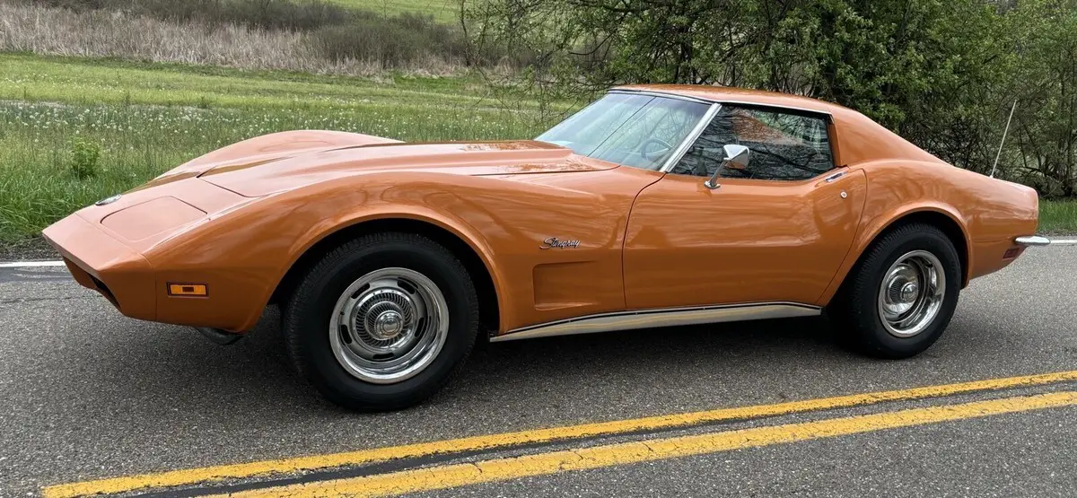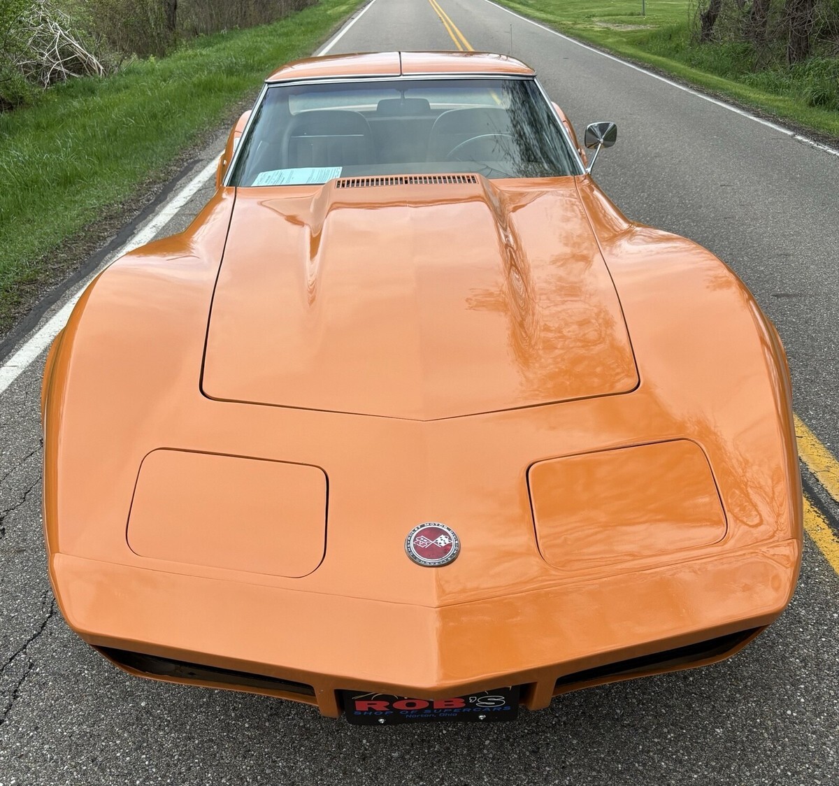 This 1973 Chevrolet Corvette is an original vehicle. The car runs smoothly and is primarily used for car shows. It features a vibrant orange color and has a low mileage of 66,619 miles. This classic Corvette is sure to turn heads and provide a nostalgic driving experience for its owner.
