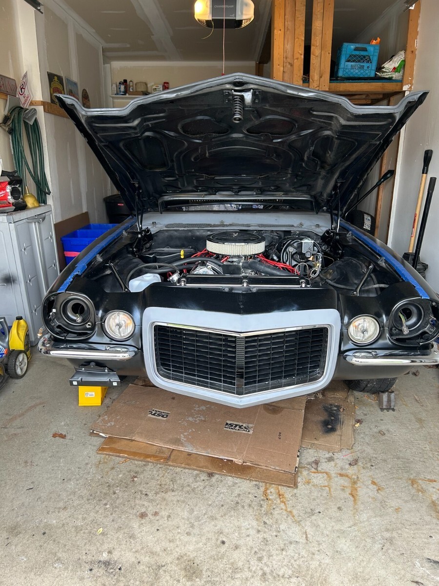 1973 Camaro LT Z28 Rally Sport tribute project car. New 350 GM Crate engine (Vortex heads) with 670 Holley 4 barrel carb with electric choke, tubular upper control arms, rear sway bar, headers with thrush mufflers. Mini tubed. Have several new parts that come with the car, door locks, door handles, new black interior carpet, new gas tank (installed already), fuel lines (installed), two inch rear leaf springs (installed), new two inch drop coil springs (installed), new shocks front & rear (installed), seats (front buckets & rear not installed) have been reupholstered in black vinyl. Various other parts (new door handles & locks, new ignition lock, new rear licence plate light housings, additional dash housing, weatherstripping. Needs interior door panels, exhaust (to be completed), headliner, front spoiler, front windshield, body and paint to finish the car. Solid, rust free car. Would be great for a drag car or father/ son project. You choose the paint colour. The vehicle can be started but is currently not driveable as it needs the brakes bled & parking brake installed. A new car cover comes with the vehicle. The vehicle is being sold as is with no warranty.