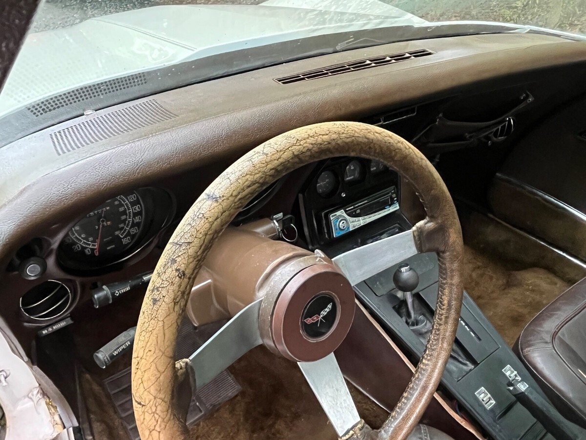 77 Corvette. Matching number 350. It appears to have been rebuilt or freshened up at some point. Paint looks good on block and valve covers. I bought it from a charity auction and do not have any details. Runs and Drives Great. Old Vintage Corvette. Headlights work with assistance. Passenger window not going down. Factory AC PS PB. Heat and fan blower work. AC has no belt. Can’t check. 115k mi. Not a bad car at all. Appears to have been originally yellow before repaint years ago. Nicks and scratches present Perfect to restore or just cruise.