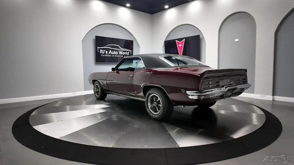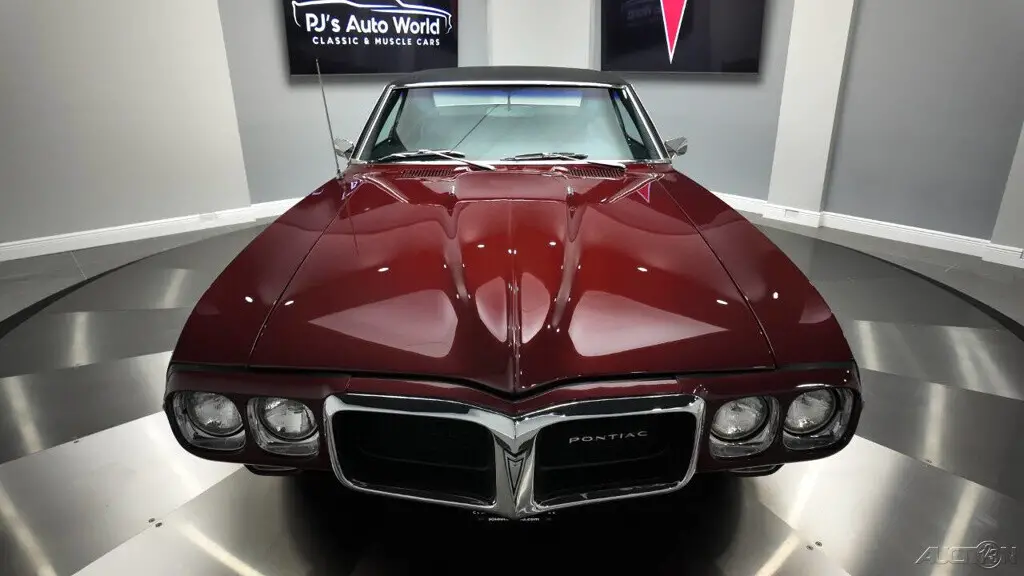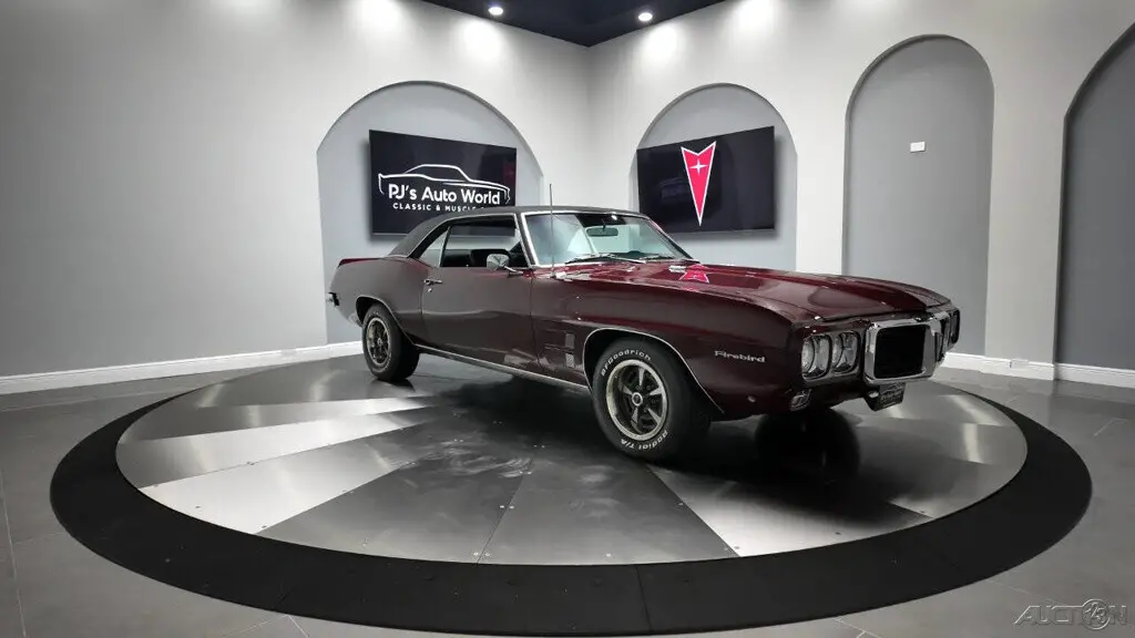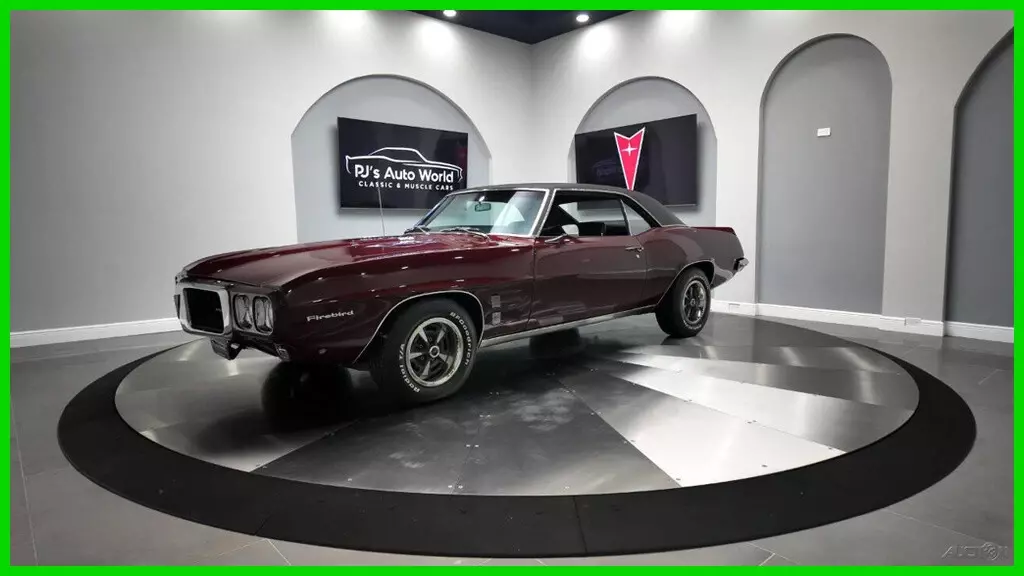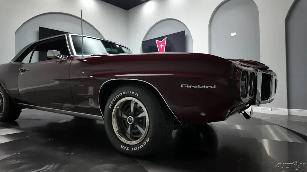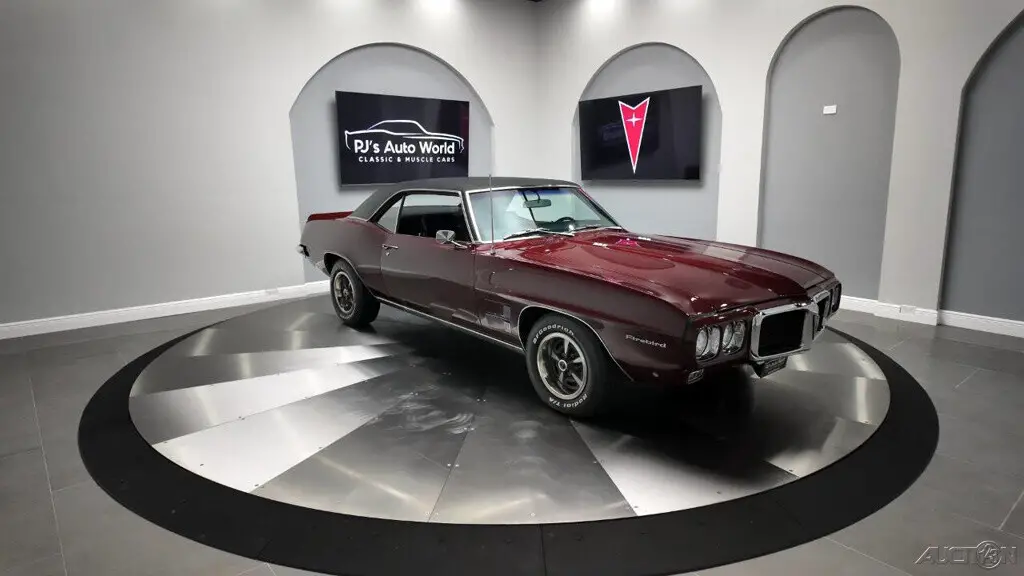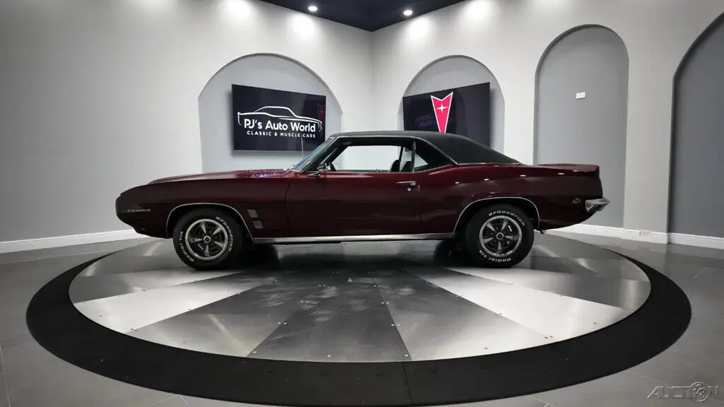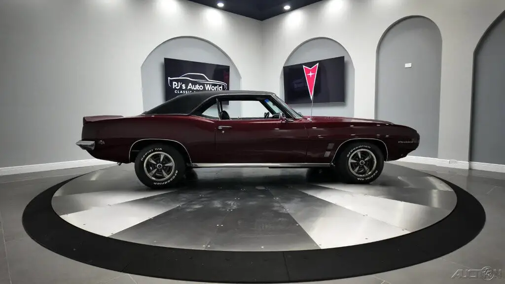 1969 Pontiac Firebird for Sale. Numbers Matching XB Suffix Code 350 V8 engine, detailed engine bay, Edelbrock 1406 4-barrel carburetor, chrome engine accessories, dual exhaust, power steering, front power disc brakes, numbers matching TH400 automatic transmission, 14" Rally II Wheels with BF Goodrich Radial T/A Tires, Correct Code '67 burgundy metallic paint, rear deck spoiler, black vinyl top, chrome sport mirrors, black bucket seat interior, custom center console with cup holders, power windows, shoulder belts, auxiliary gauges, AM/FM radio, cold factory air conditioning upgraded to R134a refrigerant, recently driven on a 1,200 mile road trip and in the previous owner's family for nearly 40 years! If you're in the market for a quality GM Muscle Car that can win trophies, is well-equipped, and stands out in a crowd, this is your kind of car! With over 45 years of dedicated service to the Collector Car Community, our team is eager to answer any questions you may have. Finance options available and worldwide shipping can easily be arranged. Interesting trade-ins will also be considered.