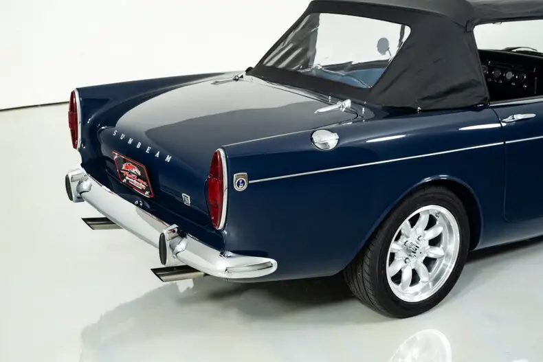 This 1965 Sunbeam Tiger for sale has an Original 260 V8, 4-Speed Manual Transmission, Azure Blue Exterior w/ Black Soft Top & Matching Hard Top, Blue Bucket Seat Interior, Compression Lowered to 10.0:1 During Rebuild, Power Front Disc Brakes, Dyno Sheets & Restoration Docs Available on Request, 15" Aluminum Wheels (original wheels available), Beautifully Restored Tiger w/ Factory Hardtop!