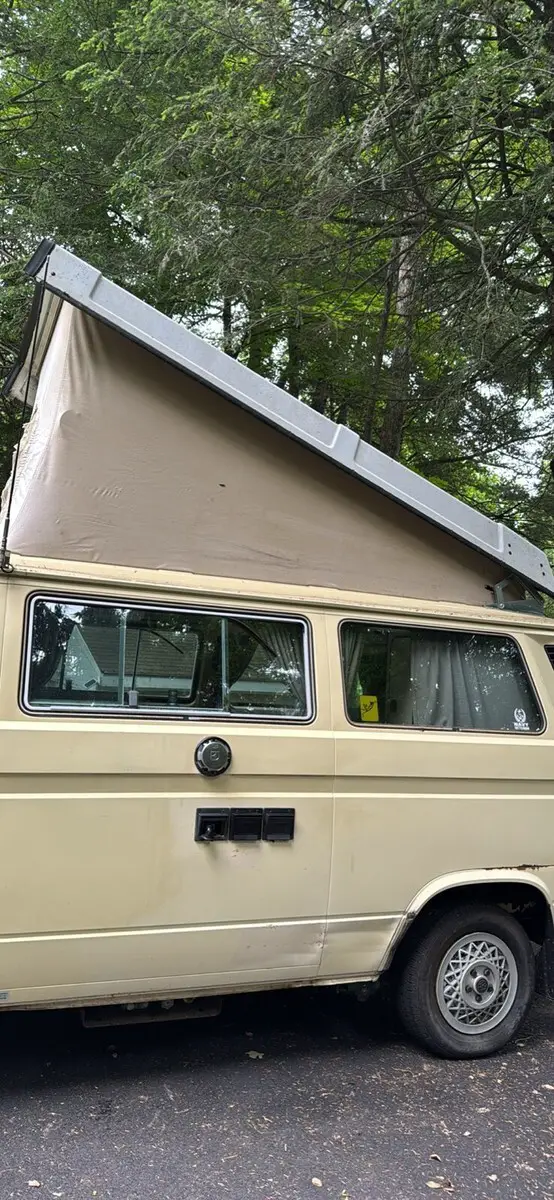 Very solid and original Westphalia camper. Stove, sink,fridge and pop top. Sleeps 4. $4000 in maintenance and repairs just completed. Runs and drives fine. Gas heater (haven’t tried it ) pop top canvas has a few mouse holes but I think it would be an easy patch fix. Any questions please send through eBay or my number is (914) 494-5452
