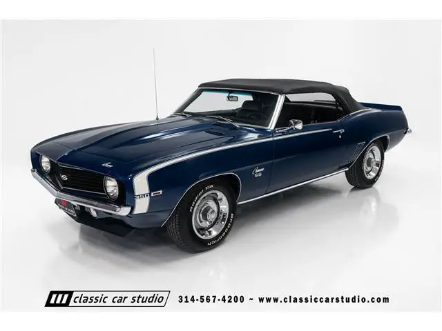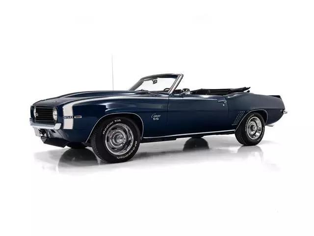 Offered here is a beautifully restored 1969 Chevrolet Camaro SS convertible, finished in its original and striking Dusk Blue over a fresh black interior. This iconic muscle car has undergone a meticulous, frame-off restoration to bring it back to show-quality condition from top to bottom.