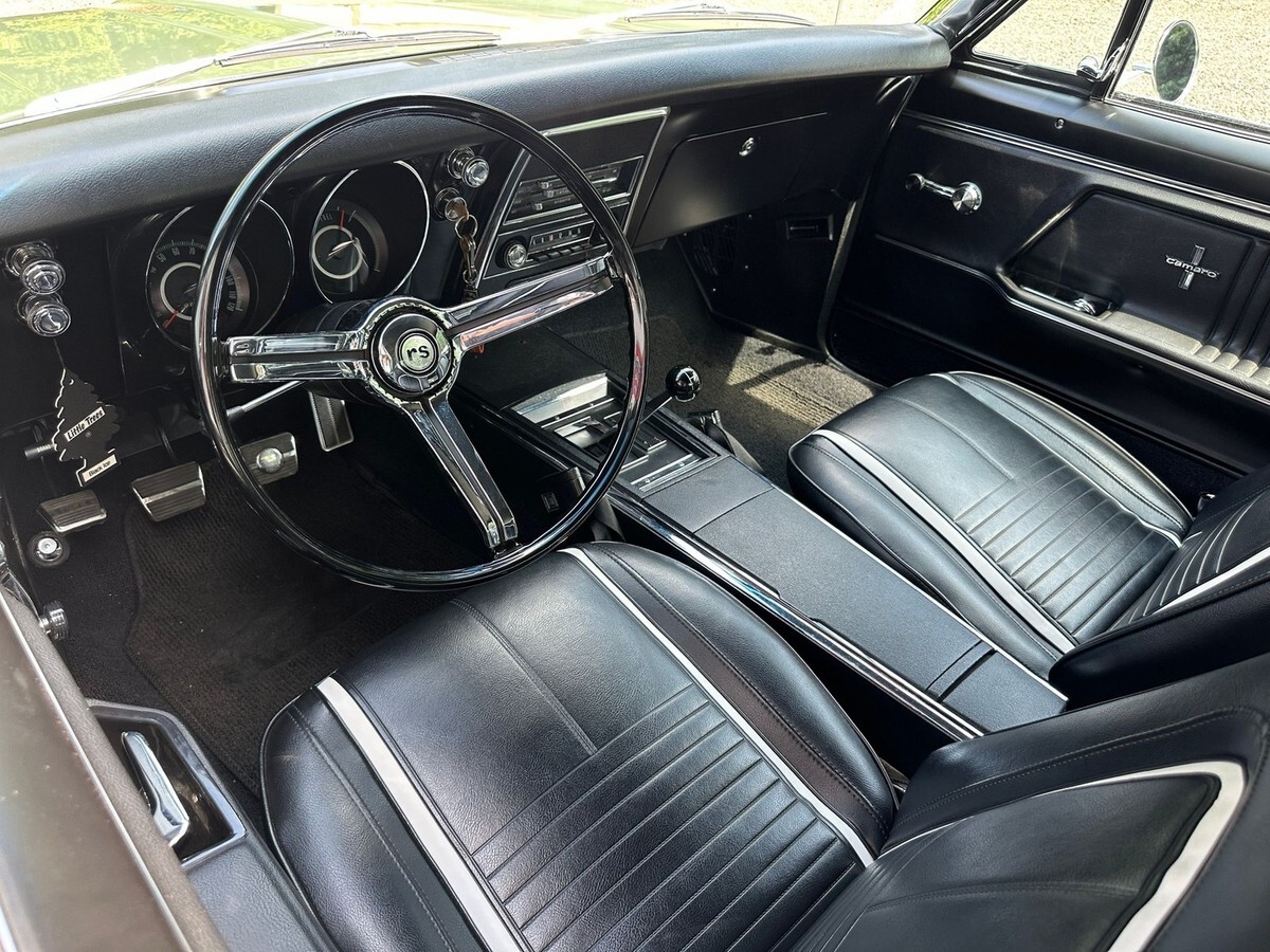 Factory born with the L Code Rally Sport (RS) model, this Camaro retains its original essence with pride. Finished in its factory Mountain Green paint color with a sleek black vinyl top (Code H-2), it exudes timeless elegance and style. But it's not just about the exterior beauty; even the underside has been painted to match the body color, showcasing the level of dedication put into this restoration.