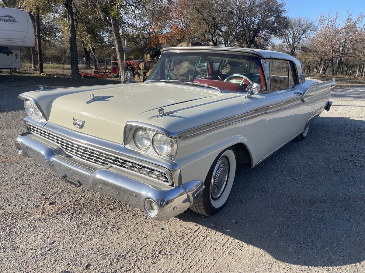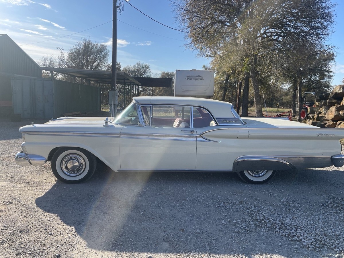 The 1959 Ford Fairlane 500 is a classic car that has been well-maintained and is in excellent condition. Its original color of white adds to its vintage appeal, perfect for car shows and other classic vehicle events. Milesge unknown and being owned by the current owner for just one year, this Ford Fairlane 500 Hartop Convertible is sure to impress with its sleek design and smooth running performance.