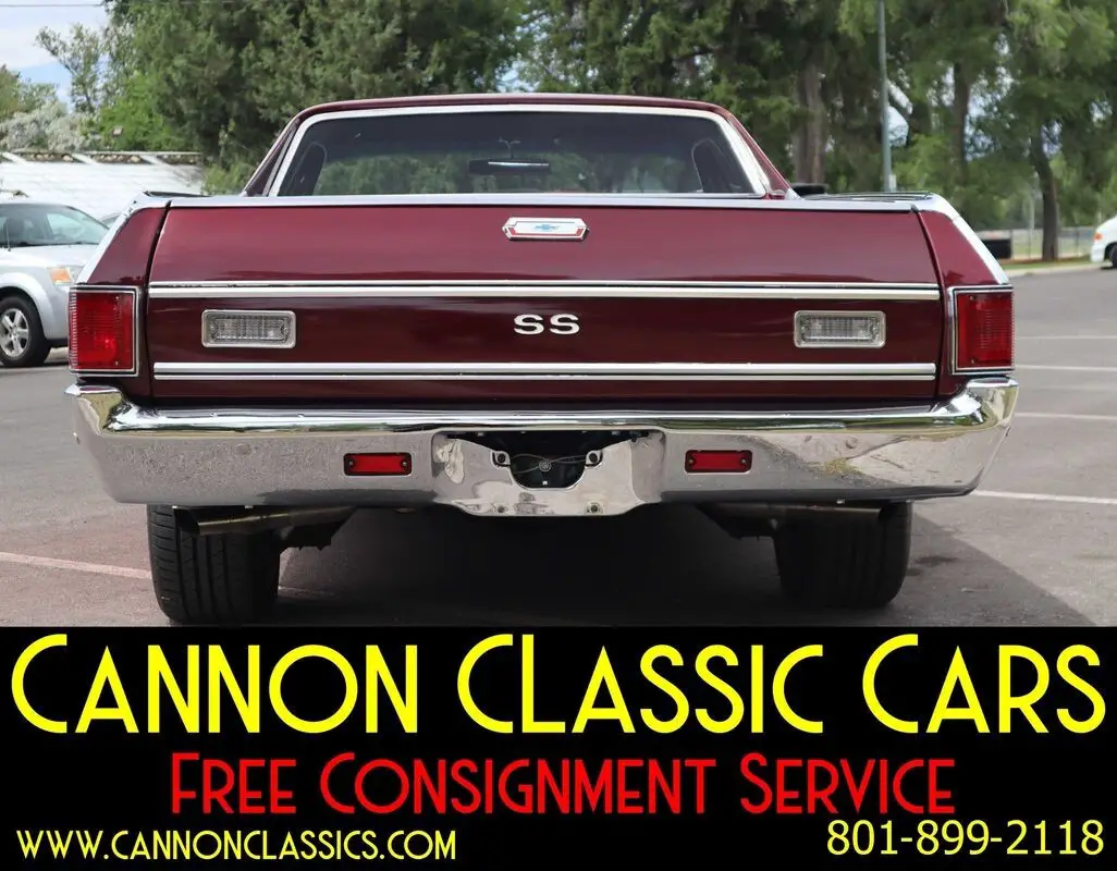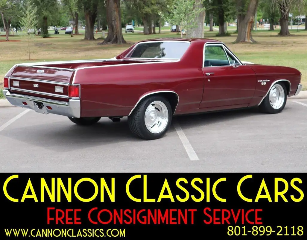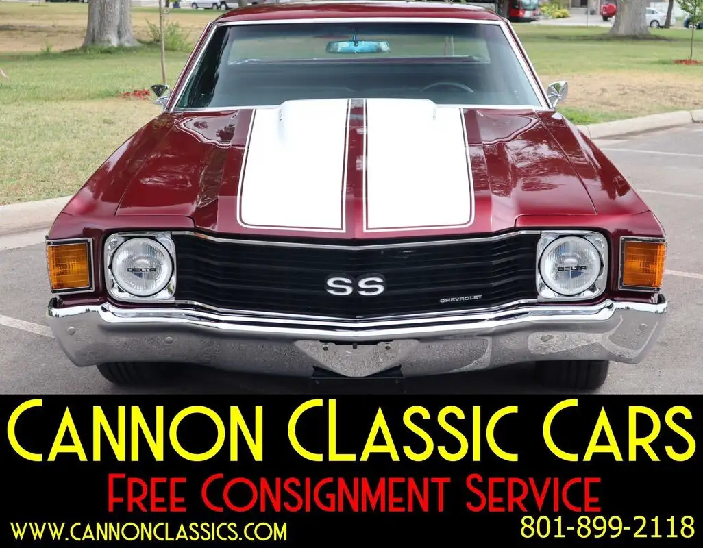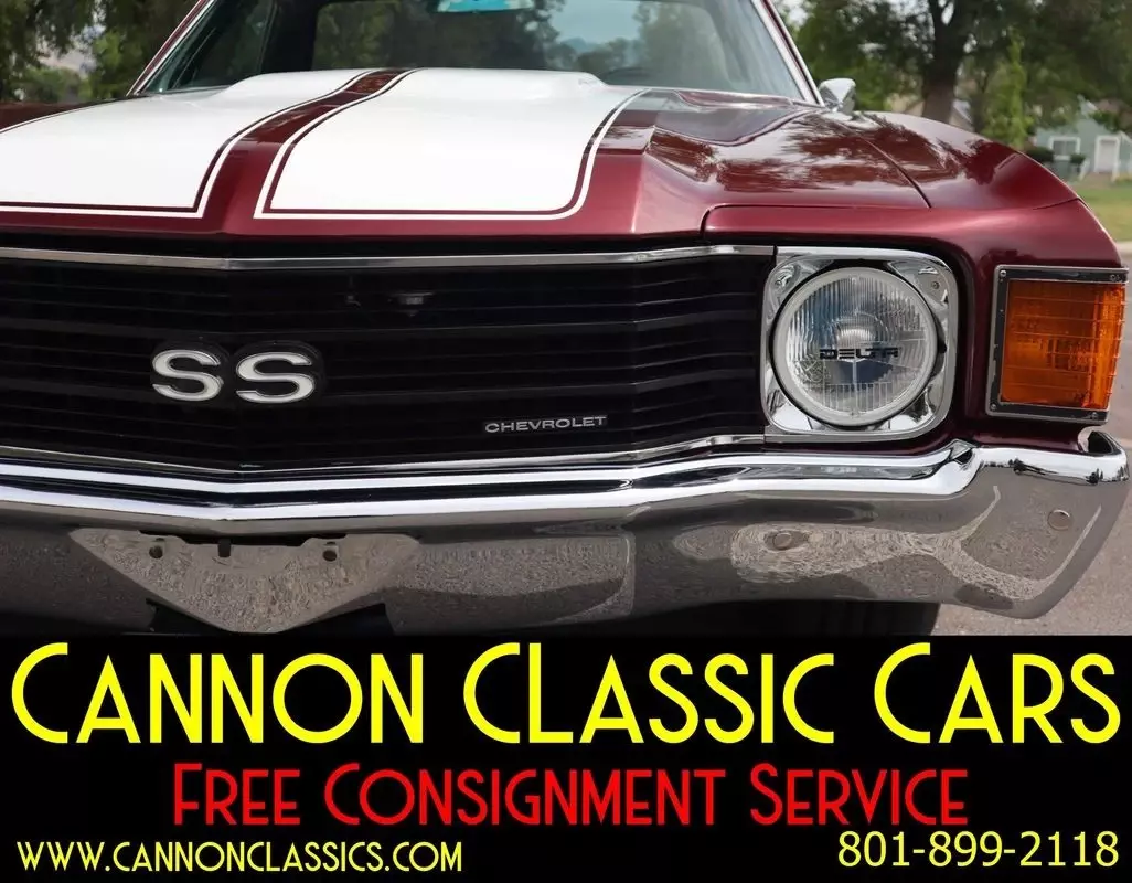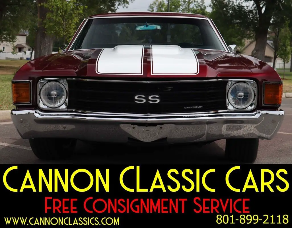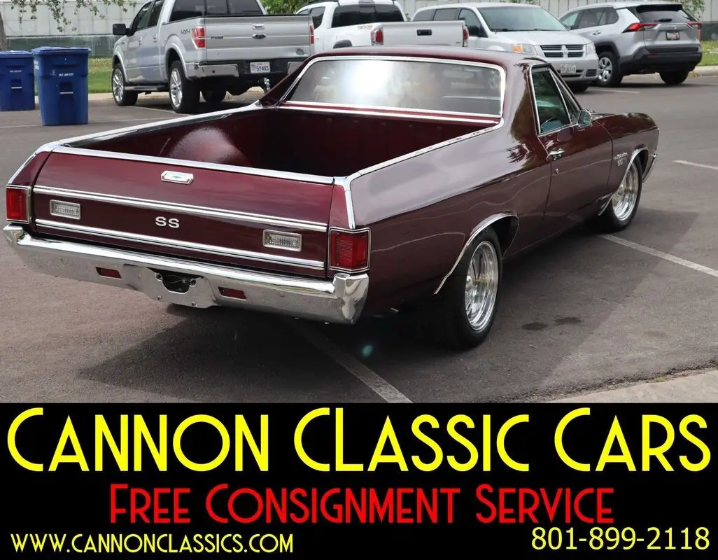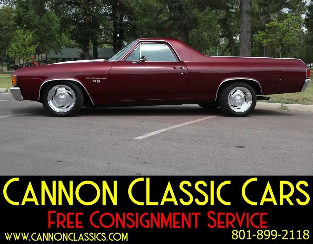 1972 Chevrolet El Camino -350cui Chevrolet V8 -TH350 3 Speed Automatic -Edelbrock Intake Manifold and 4 Barrel Carburetor -Aftermarket Dual Exhaust -Repainted Dark Maroon -Color Matched Spray-In Bed Liner -Black Leather Interior -Center Line Chrome Wheels -Working Heat -Power Brakes, Disc Front, Drum Rear -Chrome Brake Master, Polished Booster -Aftermarket Radio and Speakers -Rear Air ShocksDo you have a great consignment like this one? Let us sell it for you! We offer a zero-cost consignment service. Financing is available, so please call us for more information at 801-899-2118. We are a licensed and bonded dealership in the state of Utah, with Utah Dealer License #148B.This vehicle is available for viewing in our showroom at Cannon Classic Cars, located at 809 W 1700 S, Salt Lake City,Utah 84104. We would love to talk to you about this classic! You are always welcome and encouraged to visit the vehicle in person. You can also text us at 801-999-0513 with any questions.Please note that this vehicle is sold as-is, with no warranty expressed or implied, and is mileage exempt. The buyer is responsible for shipping arrangements and costs. Deposits are non-refundable.